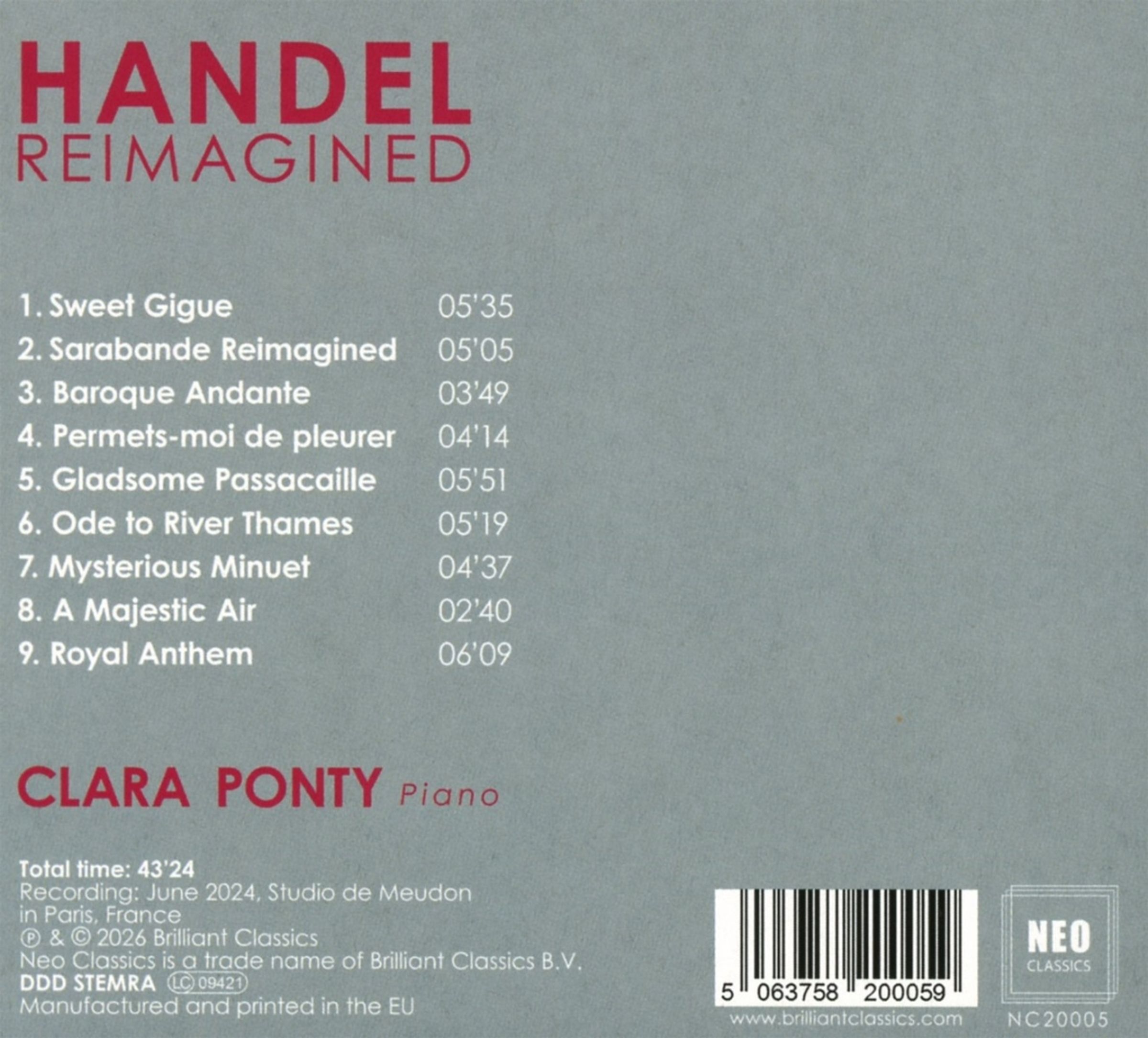 Sweet Gigue; Sarabande Reimagined; Baroque Andante; Permets-moi de pleurer (nach Lascia ch'io pianga); Gladsome Passacaille; Ode to River Thames; Mysterious Minuet; A Majestic Air; Royal Anthem (nach Zadok the Priest)