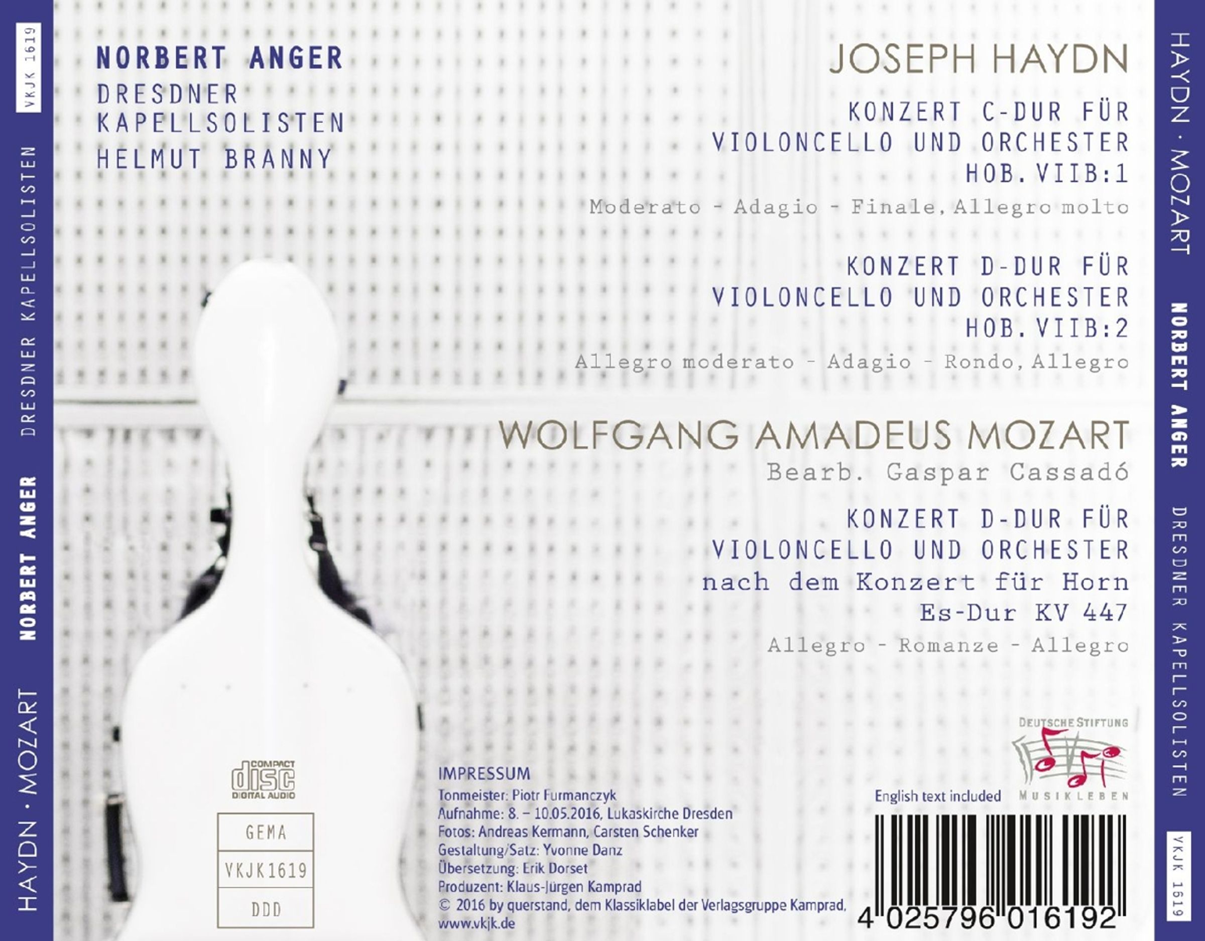 Und dennoch verwundert die Tatsache, dass unter den Hauptvertretern der Wiener Klassik allein Joseph Haydn sich dem Violoncello-Konzert zugewandt hat. Lange bestand Unklarheit darüber, wieviele Werke auf diesem Gebiet Haydn zuzuweisen sind. Durch das Aufdecken von Fehlzuschreibungen und durch Nichtbelegbarkeit mittels Notenmaterials sank die Zahl. Heute kennt man zwei Werke von unbezweifelter Echtheit. Beide sind auf der vorliegenden CD mit dem Dresdner Cellisten Norbert Anger und den von Helmut Branny geleiteten Dresdner Kapellsolisten zu hören.