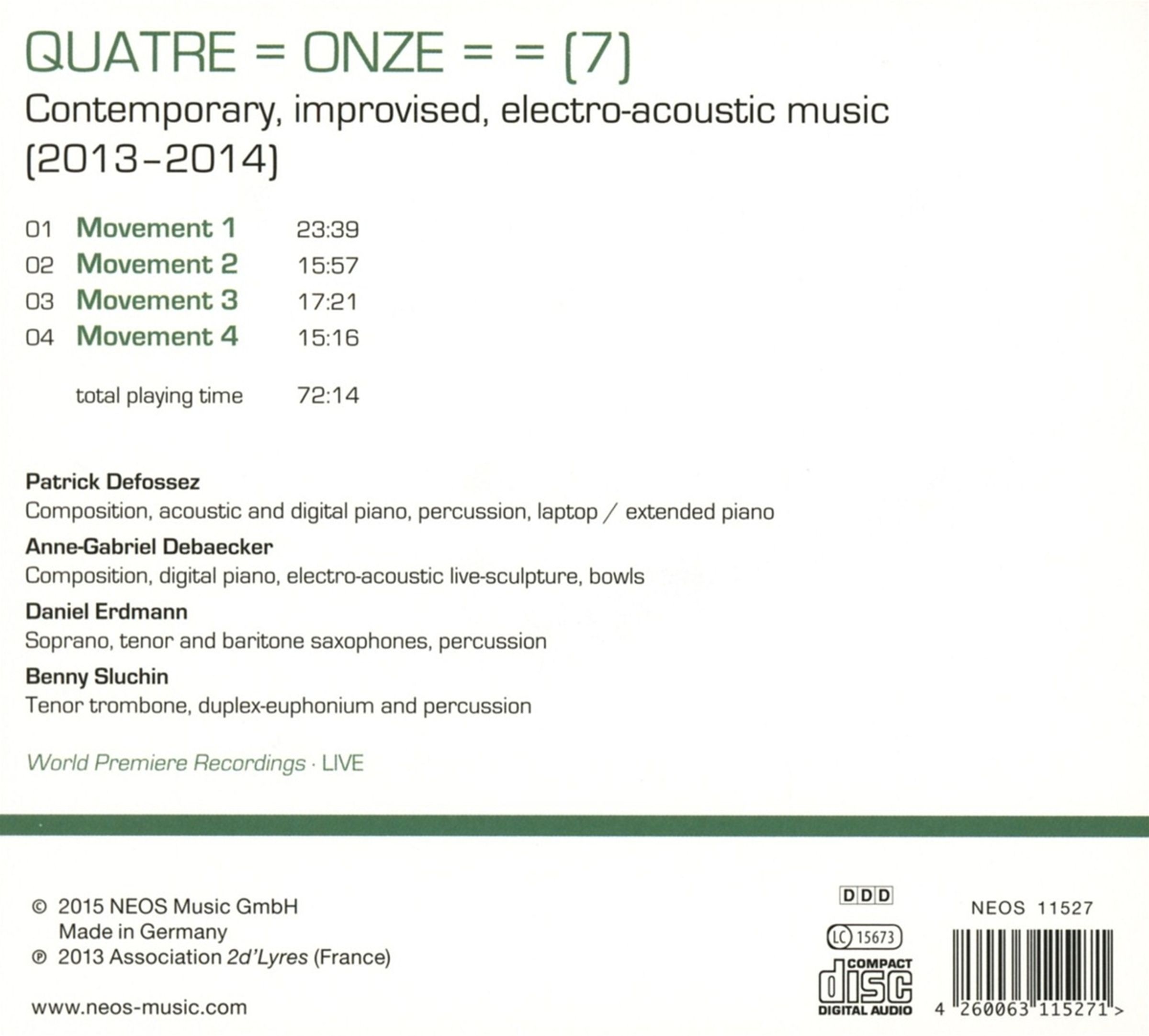 Elektro-akustische Musik "Quatre = Onze = = (7)" auf CD