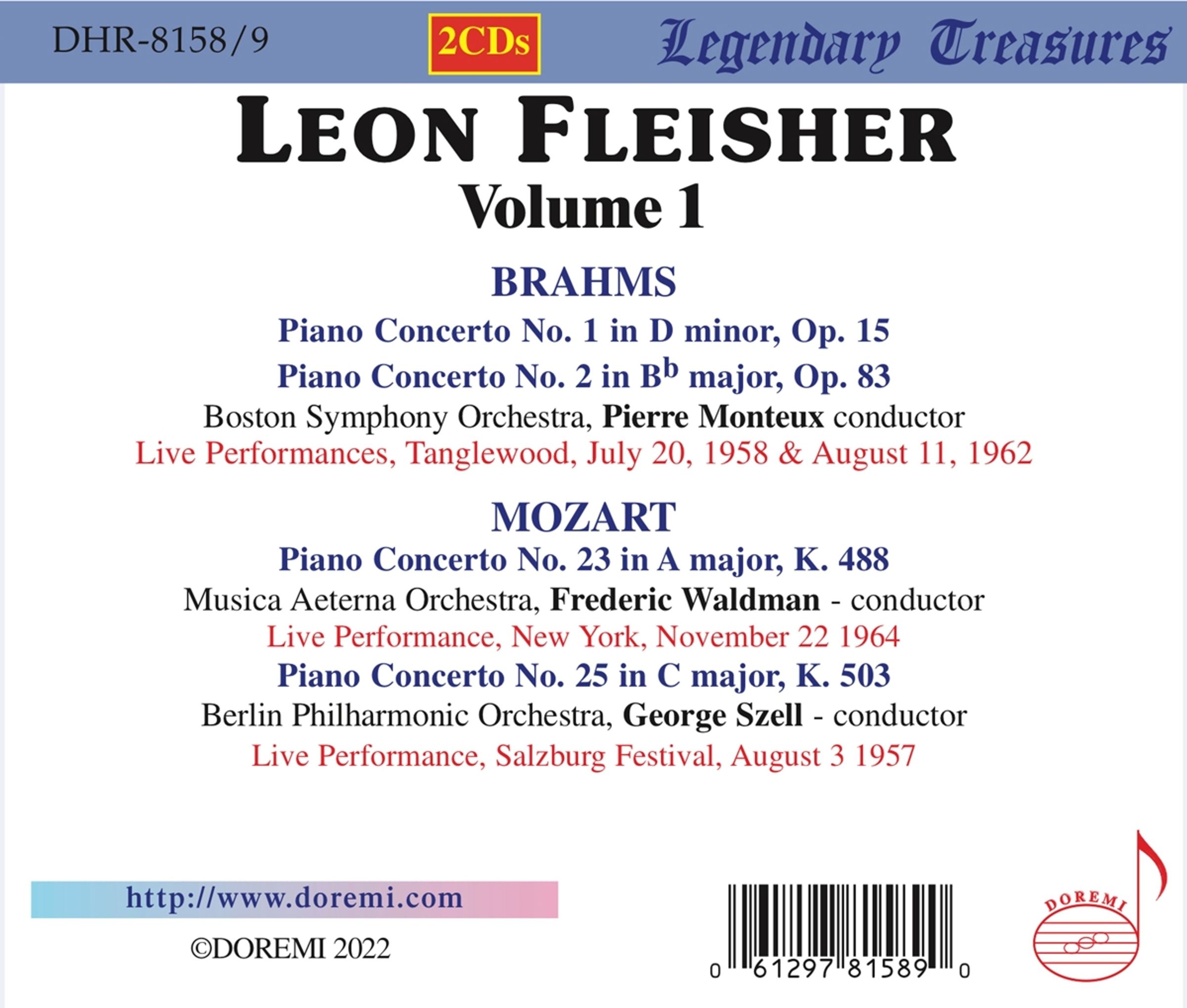 Leon Fleisher, Boston Symphony Orchestra, Musica Aeterna, Berliner Philharmoniker, Pierre Monteux, Frederic Waldman, George Szell