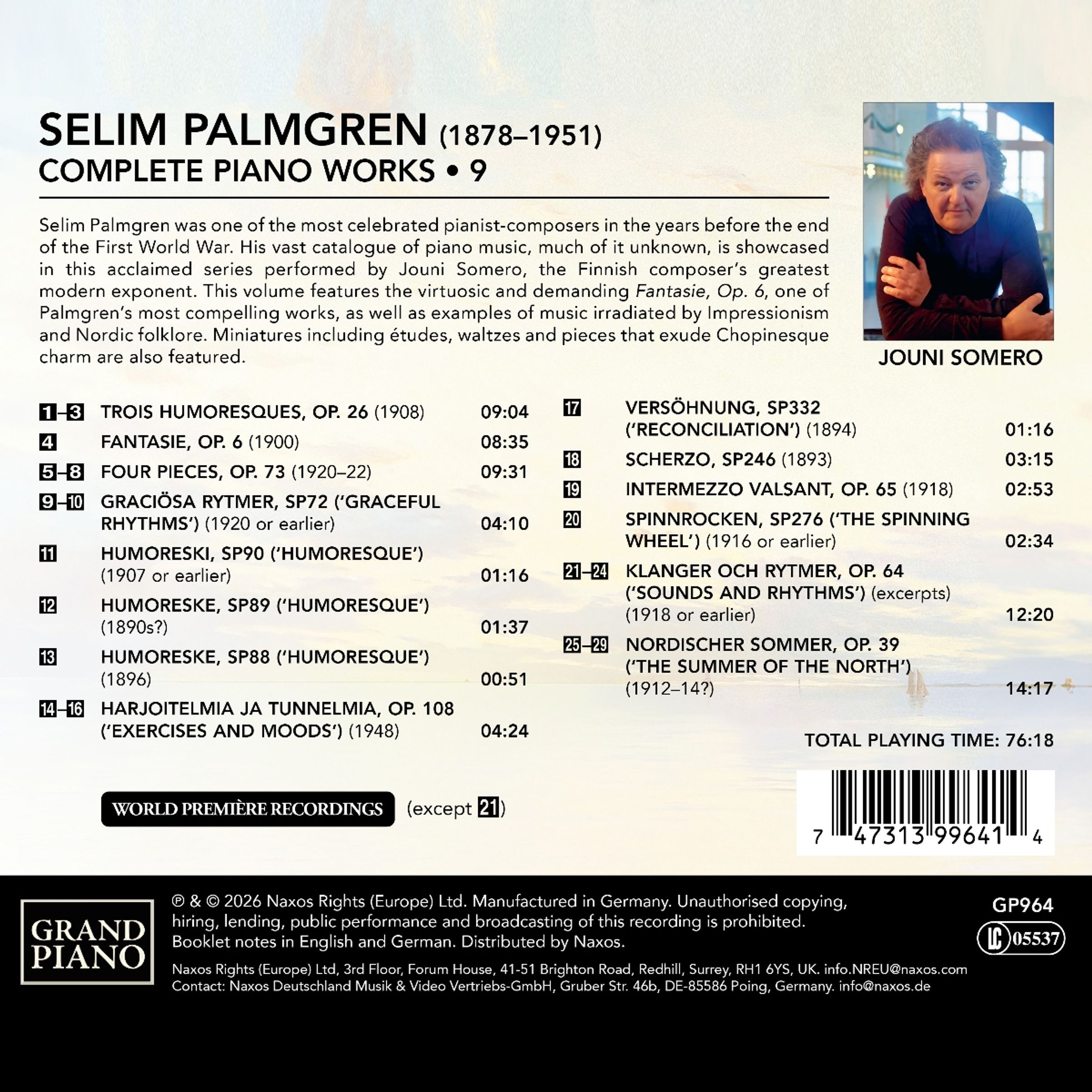 **Texte:** GRAND PIANO, PALMGREN COMPLETE PIANO WORKS 9, JOUNI SOMERO.
