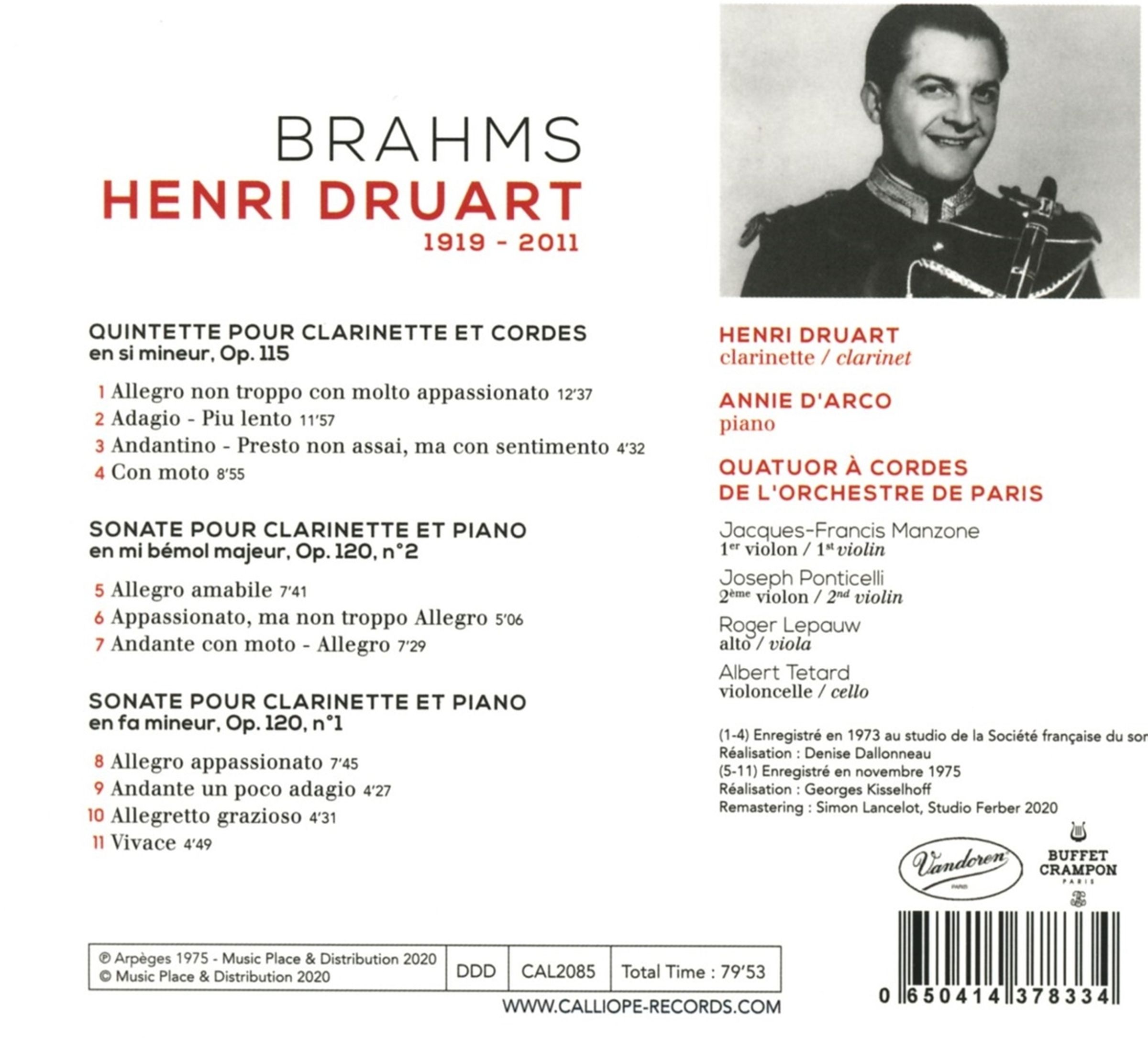Eine Hommage an den großen französischen Klarinettisten Henri Druart (1919-2011), der lange Zeit Soloklarinettist der Concert Lamoureux, dann der Société des Concerts du Conservatoire und des Orchestre de Paris war. Druart wurde von Charles Münch, Georges Prêtre und Herbert von Karajan außerordentlich geschätzt, war befreundet mit den Komponisten Henri Dutilleux und Francine Aubin.