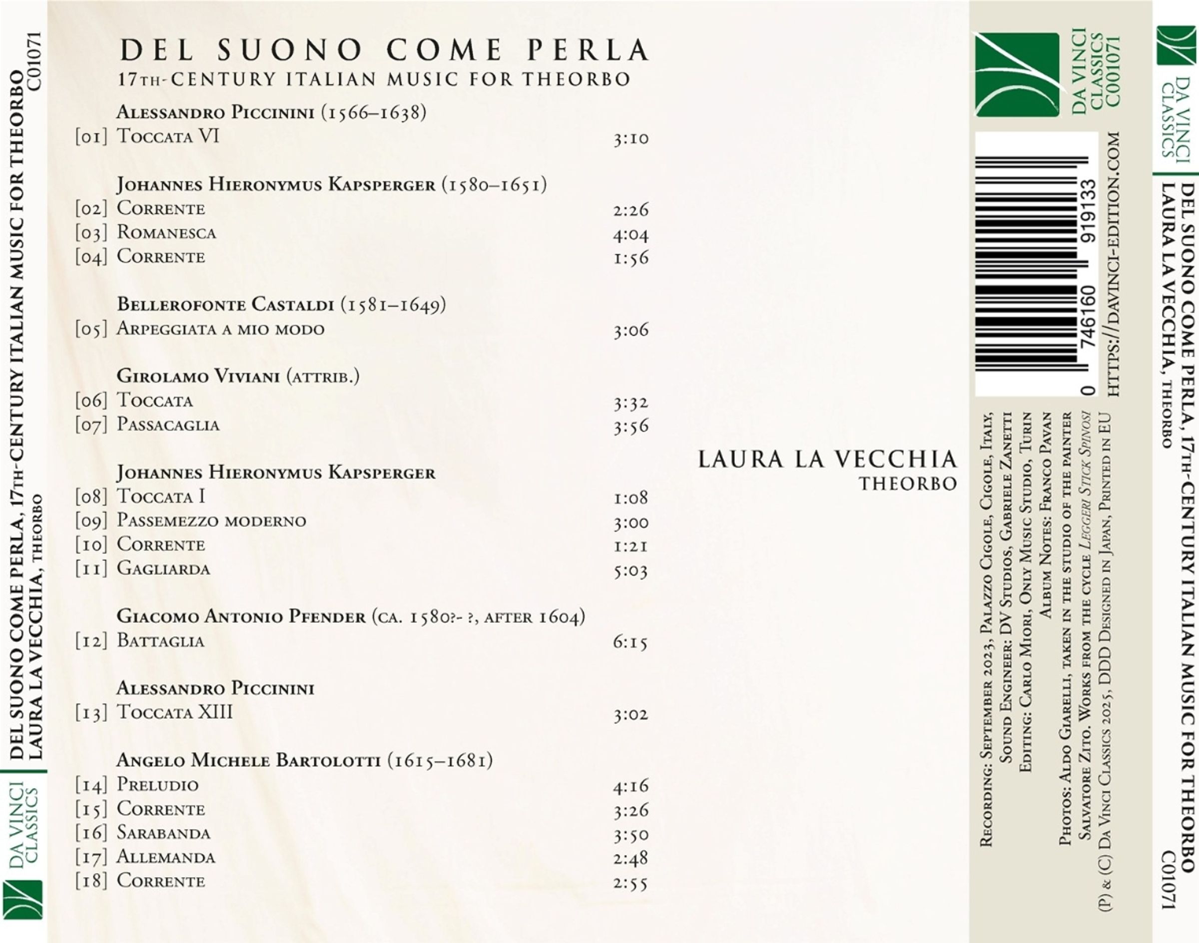 Laura La Vecchia - Del Suono come Perla (Italienische Musik des 17. Jahrhunderts für Theorbe)