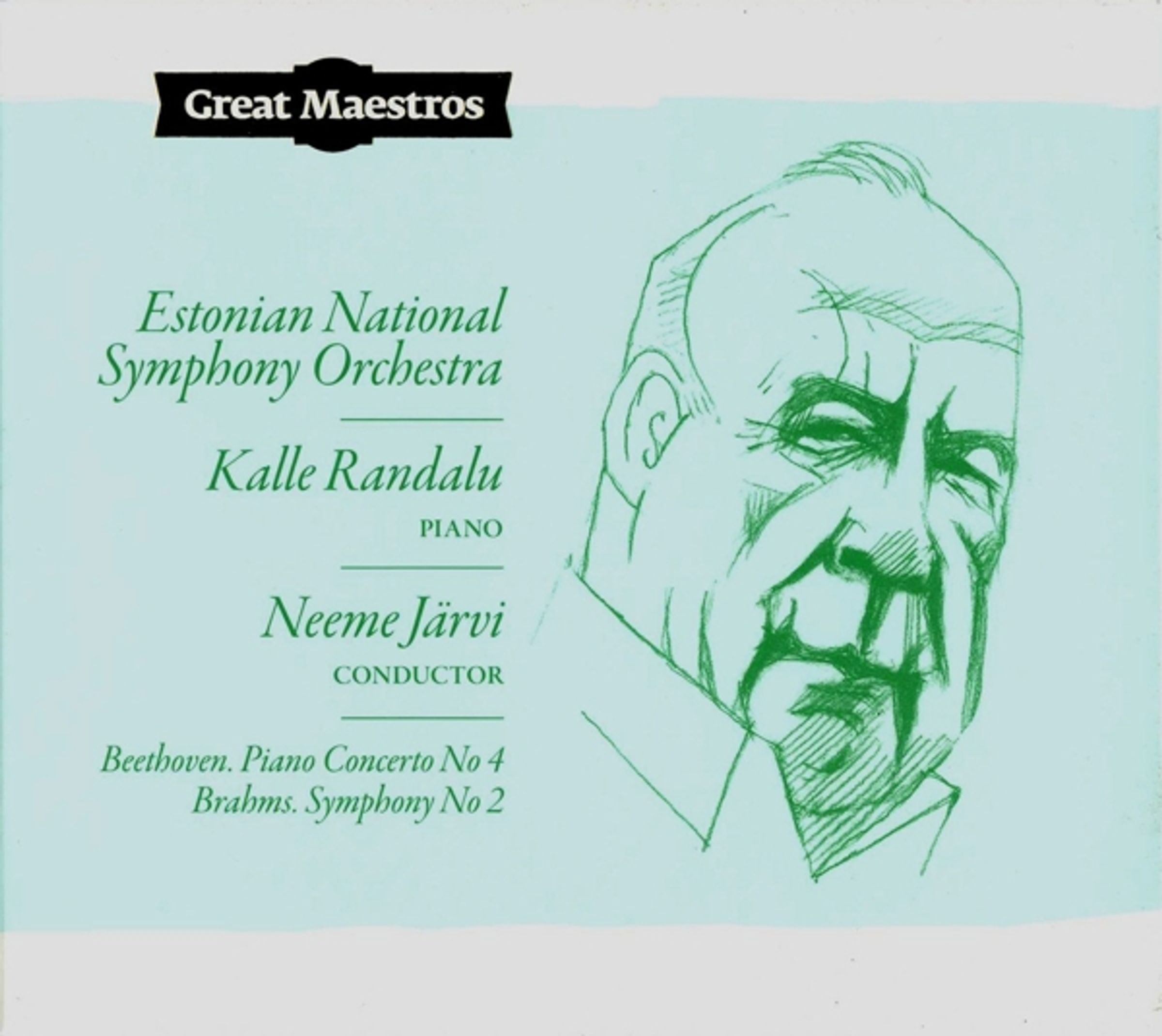 Großes "Great Maestros" Logo. Skizzierte Zeichnung eines Gesichts. Namen: Kalle Randalu, Neeme Järvi., CD