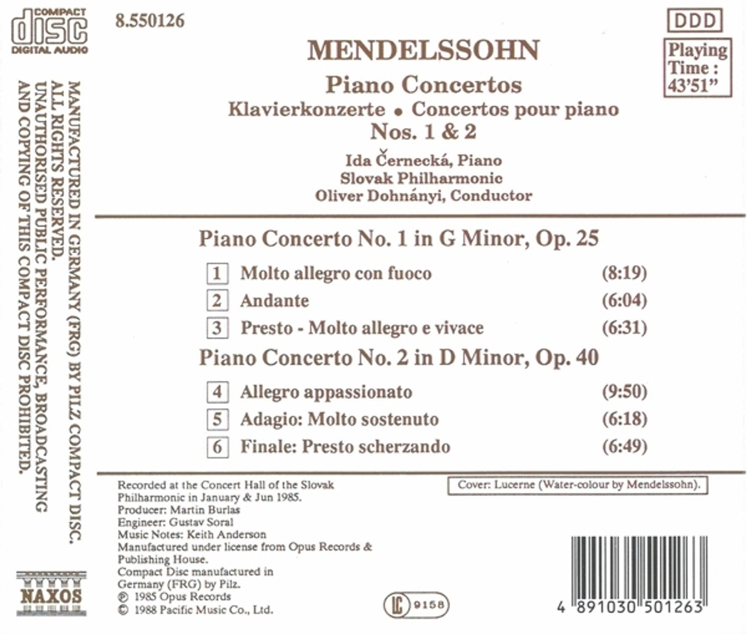 Felix Mendelssohn BartholdyKonzerte As-Dur & E-Dur für 2 Klaviere & OrchesterCDAktueller Preis: EUR 7,99