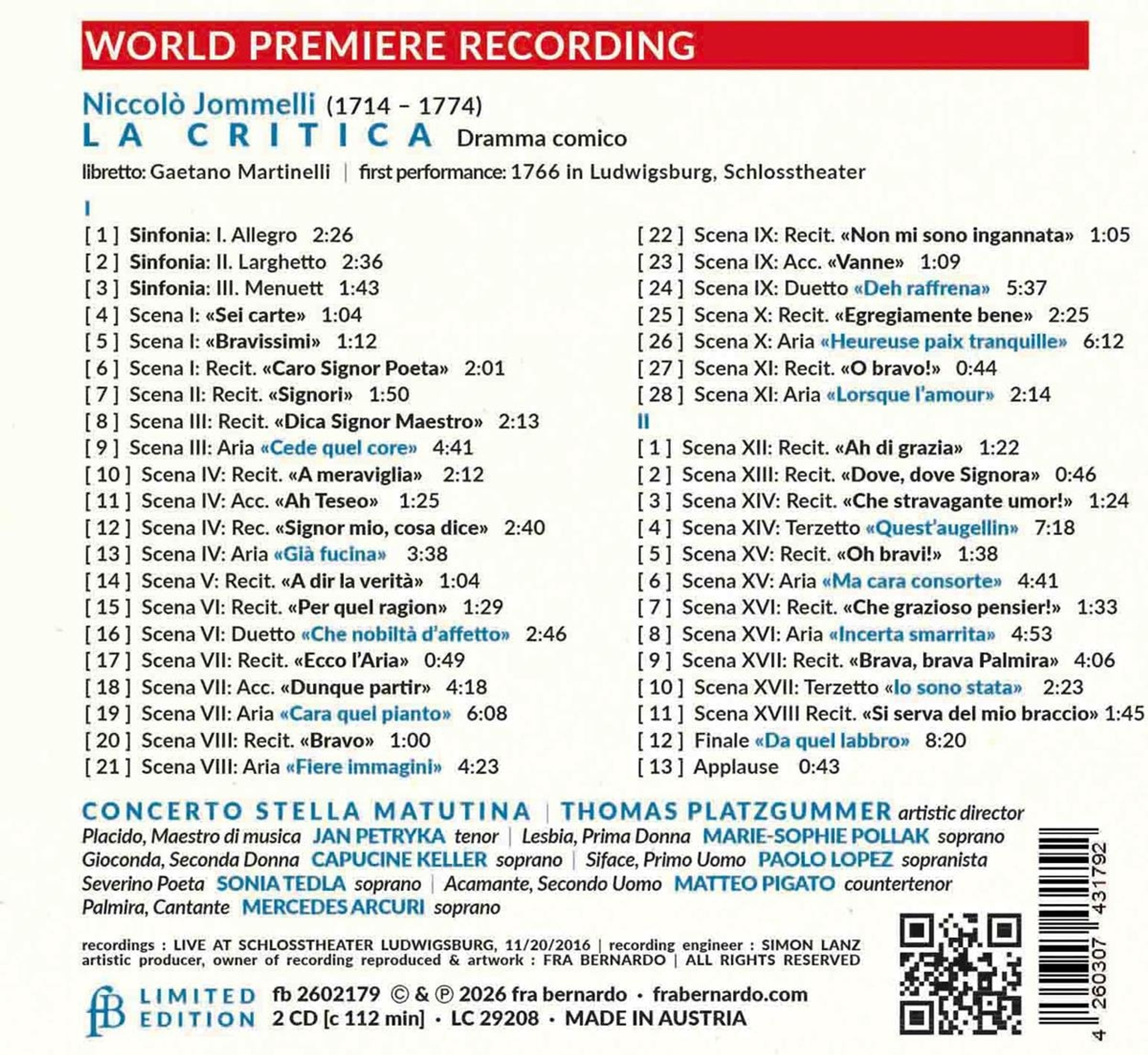 Niccolo Jommelli: La Critica (Dramma comico) auf 2 CDs