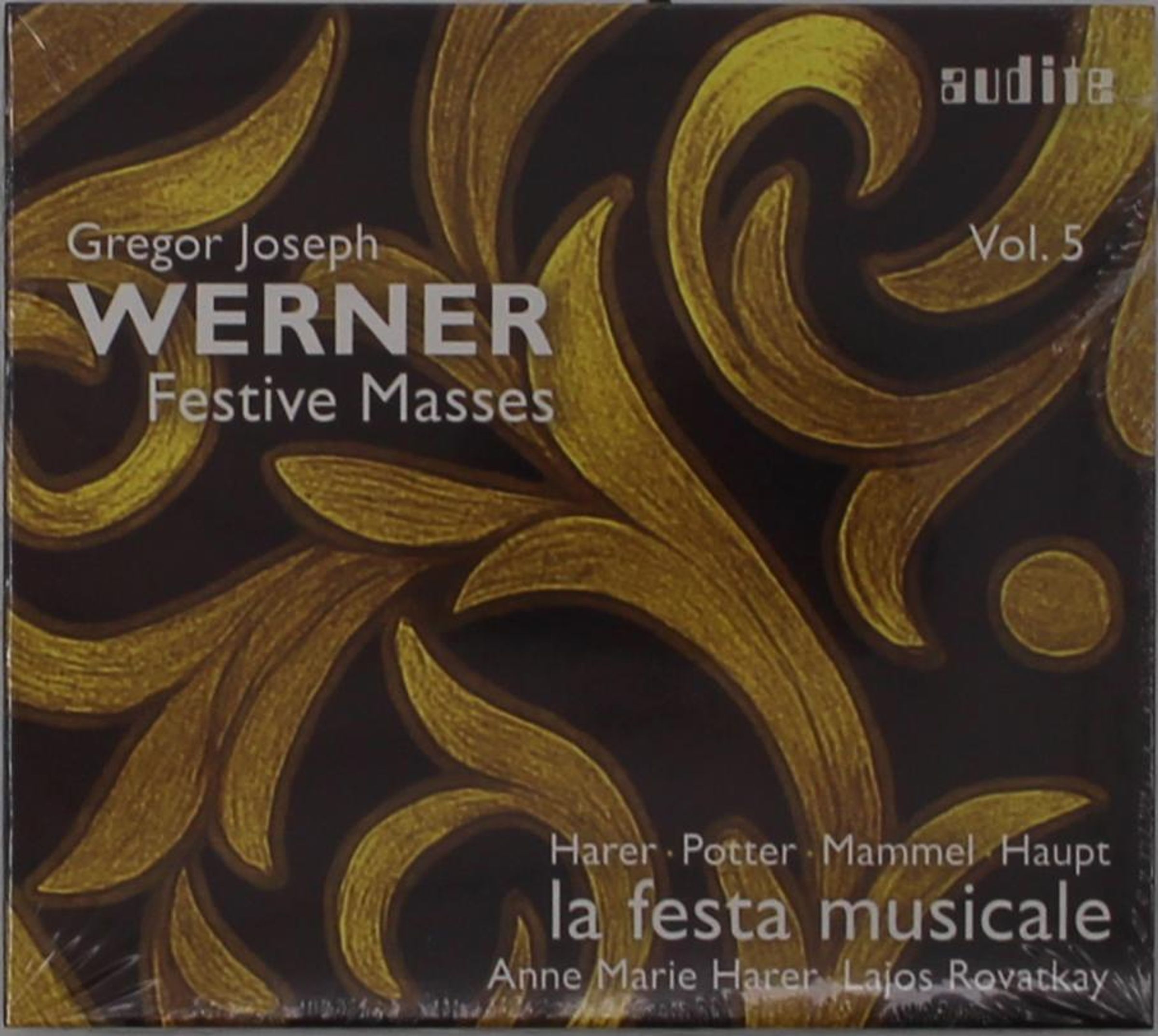 Mit prachtvoller Kirchenmusik beschließt la festa musicale die fünfteilige Werkdokumentation zum kompositorischen Schaffen Gregor Joseph Werners. Den krönenden Abschluss der Reihe bilden zwei groß besetzte Messen, die mit musikalischen Überraschungen zwischen harmonischer Dramatik und strahlender Ausgelassenheit gespickt sind. Sie bestechen mit kunstvollen Fugen, ansprechend fokussierten Arien und tiefgründigen Ensembles. Werner erweist sich dabei als gewiefter Kenner der Tradition Palestrinas und wegweisender Neuerer für die kommende Wiener Klassik. Ergänzt wird das Programm durch die Motette "Iam hyems transiit". Sie wurde im Rahmen der gleichnamigen Messe uraufgeführt und ist wie diese mit zwei Trompeten und Pauken, Geigen und Generalbass besetzt. Den vierten Fund dieses Albums voller Ersteinspielungen bildet eine kleine, spielfreudige Streichersinfonia. Den Gesangspart der Vokalwerke gestaltet ein Doppelquartett, angeführt von international renommierten SolistInnen. Unter der musikalischen Leitung von Anne Marie Harer gelingt der gut gelaunte Beweis, dass die Musik Werners, lange verstummt und im Schatten Haydns stehend, zwingend wieder ans Tageslicht und ins kirchenmusikalische Konzertrepertoire gehört.