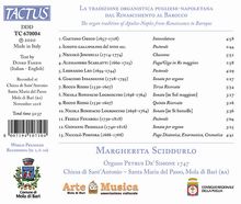 Diese von der Organistin Margherita Sciddurlo präsentierte Anthologie wird auf einem wertvollen historischen Instrument aufgeführt: der vollständig erhaltenen und hervorragend erhaltenen Petrus De’ Simone-Orgel von 1747 der Kirche San’Antonio in Mola di Bari. Die besagte Orgel wird zum Medium, um einen Querschnitt der apulischen Orgeltradition wiederzubeleben, deren Wurzeln tief mit der musikalischen Aktivität des Königreichs Neapel seit dem 16. Jahrhundert verbunden sind, als Tausende junger Talente in die Hauptstadt kamen, um ein Musikstudium zu absolvieren, das ihnen eine sichere Karriere garantierte. Apulien erwies sich als privilegiertes Gebiet, in dem man später den Beruf ausüben konnte, gefördert von den zahlreichen Feudalherren oder von Kirchen, Musikkapellen und Klöstern. Von Rocco Rodio aus Bari über Giovanni Paisiello aus Tarent bis hin zu Nicola Porpora und Niccolò Jommelli, die dank glänzender Karrieren im Ausland in ganz Europa bekannt wurden. Die von Margherita Sciddurlo präsentierte Sammlung stellt ein angenehmes Orgel-Cameo dar, das auch einige Weltersteinspielungen enthält.