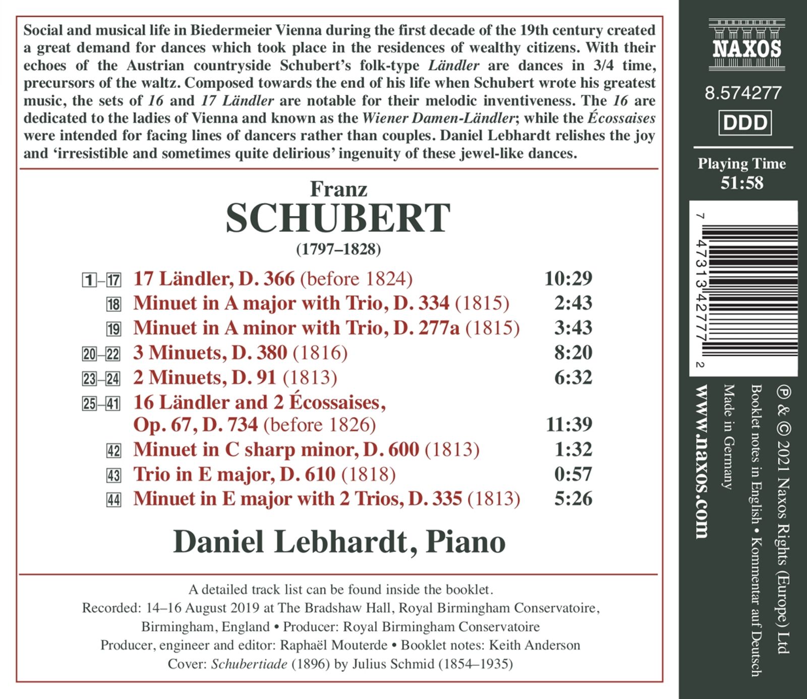 17 Ländler D. 366; 16 Ländler & 2 Ecossaisen 734; Menuette mit Trios D. 277a & 334; Menuette D. 91, 380, 600; Trio D. 610; Menuett mit 2 Trios D. 335