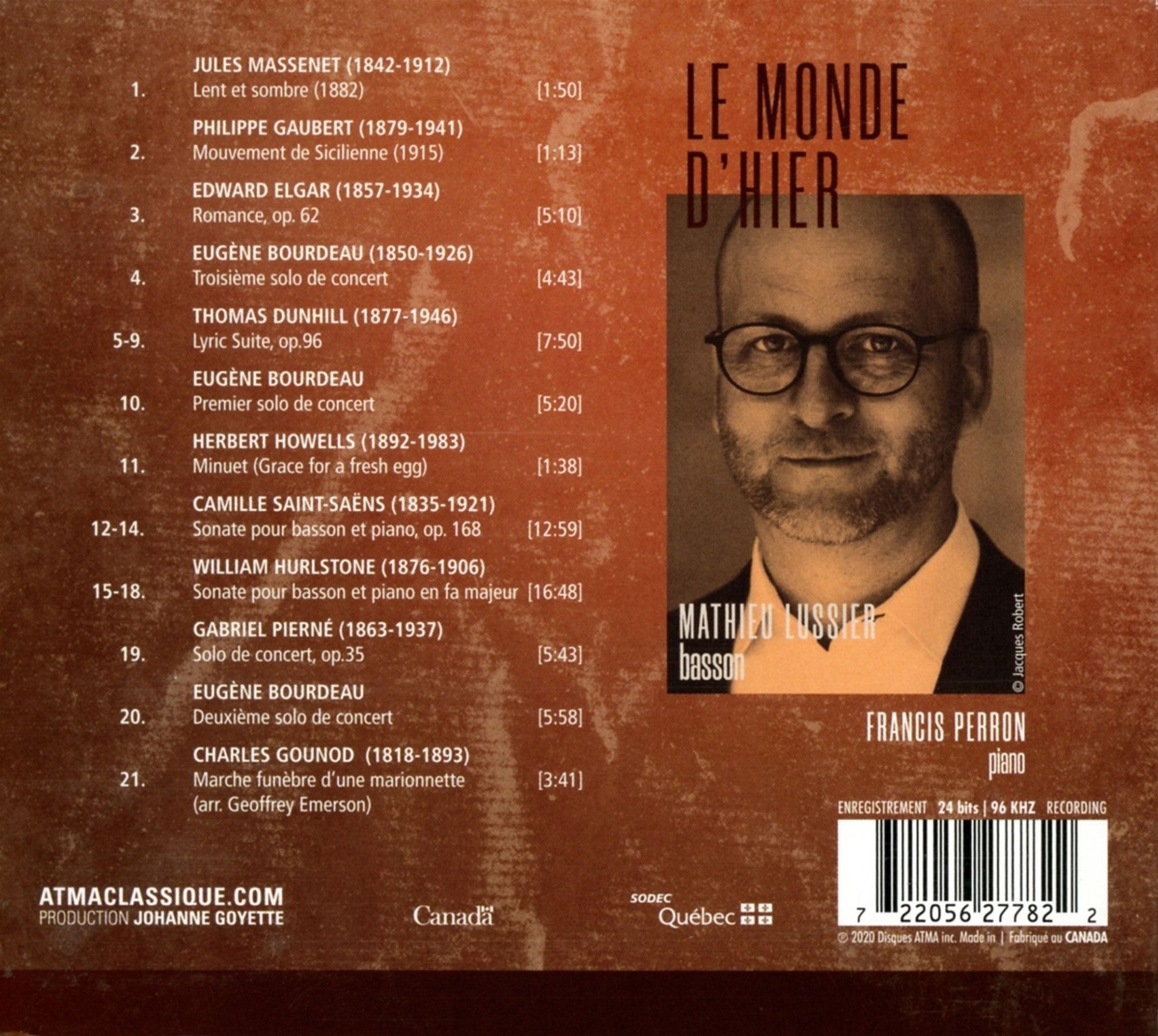 Als Solist fördert Mathieu Lussier seit mehr als zwei Jahrzehnten das moderne und barocke Fagott als Soloinstrument in Nordamerika und Europa. Francis Perrons große Erfahrung hat ihn zu einem gefragten Partner gemacht.