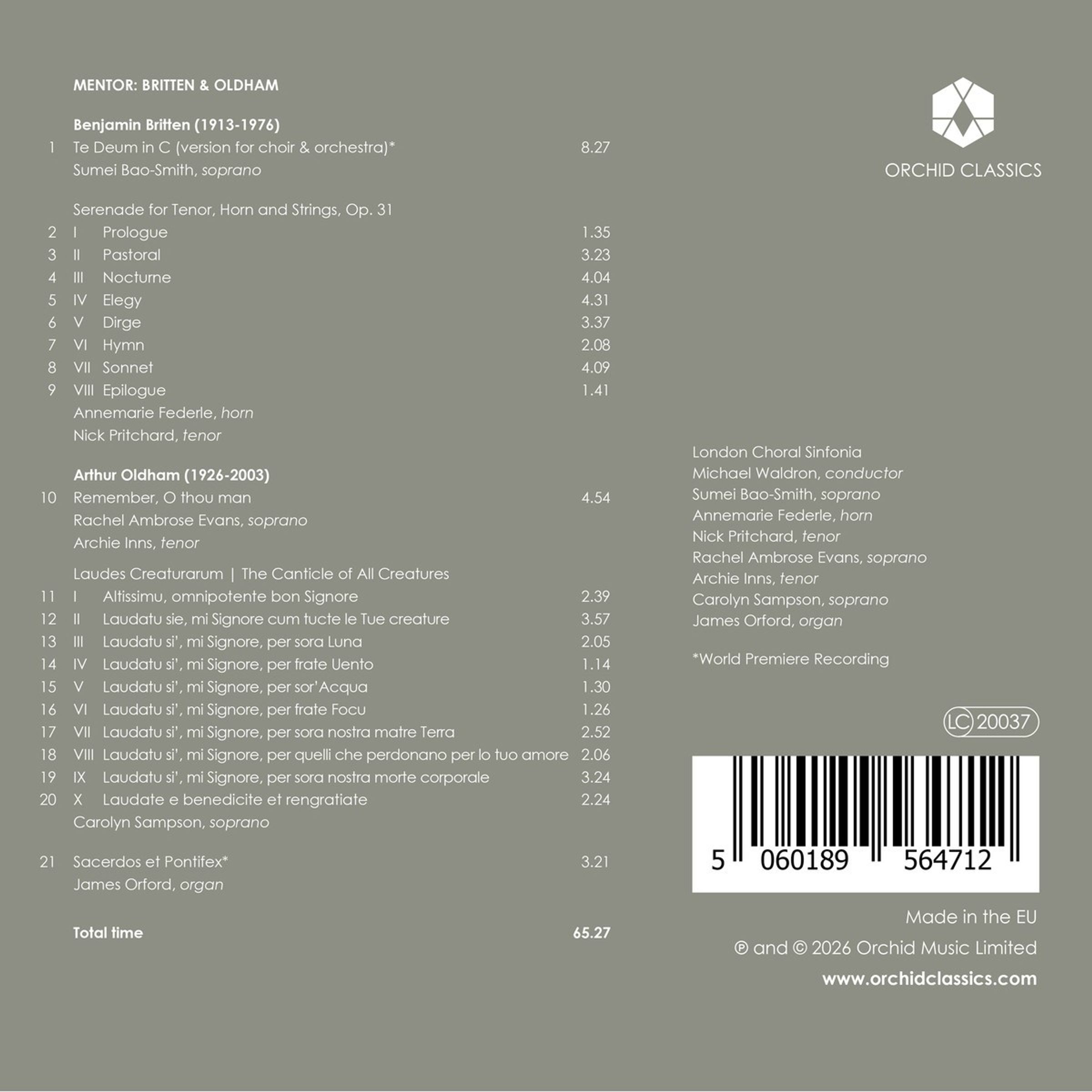 "MENTOR Britten & Oldham" steht. London Choral Sinfonia, Michael Waldron. Mosaik-Porträt eines Mannes., CD