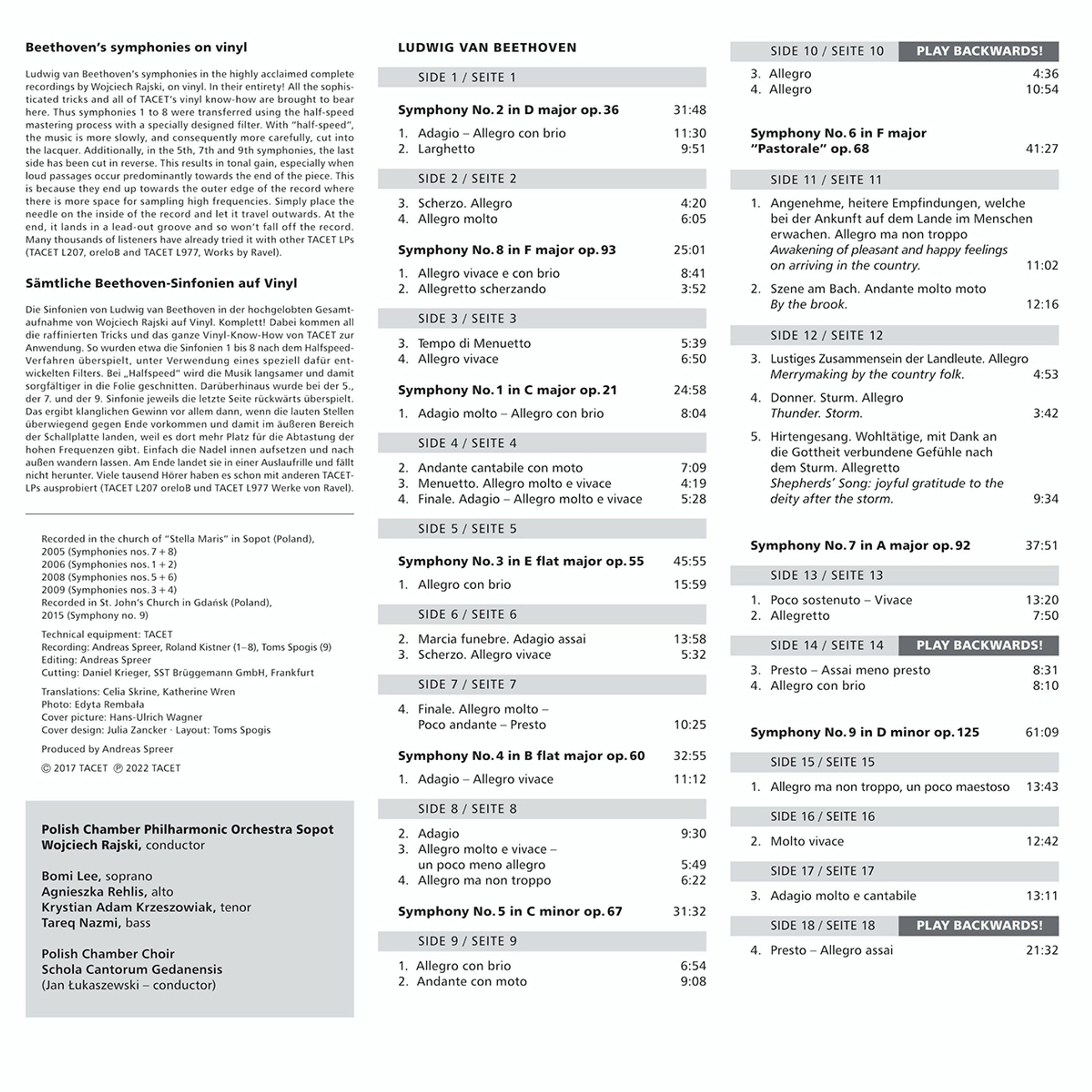 Ein Beethoven-Zyklus, der von der ersten bis zur letzten Note Spaß macht! Wojciech Rajski leitet uns durch den schier unerschöpflichen Reichtum an Ideen energisch und empfindsam, humorvoll und tänzerisch, mit strahlender Eleganz. Und er fördert Details zu Tage, die so noch nicht zu hören waren. Genuss ohne Pathos. Die hoch gelobte Reihe entstand zwischen 2005 und 2015 in Sopot (Polen) und in der Johanneskirche von Danzig. Sie erschien bisher auf CD, SACD, Blu-ray und auch LP in Einzelausgaben.