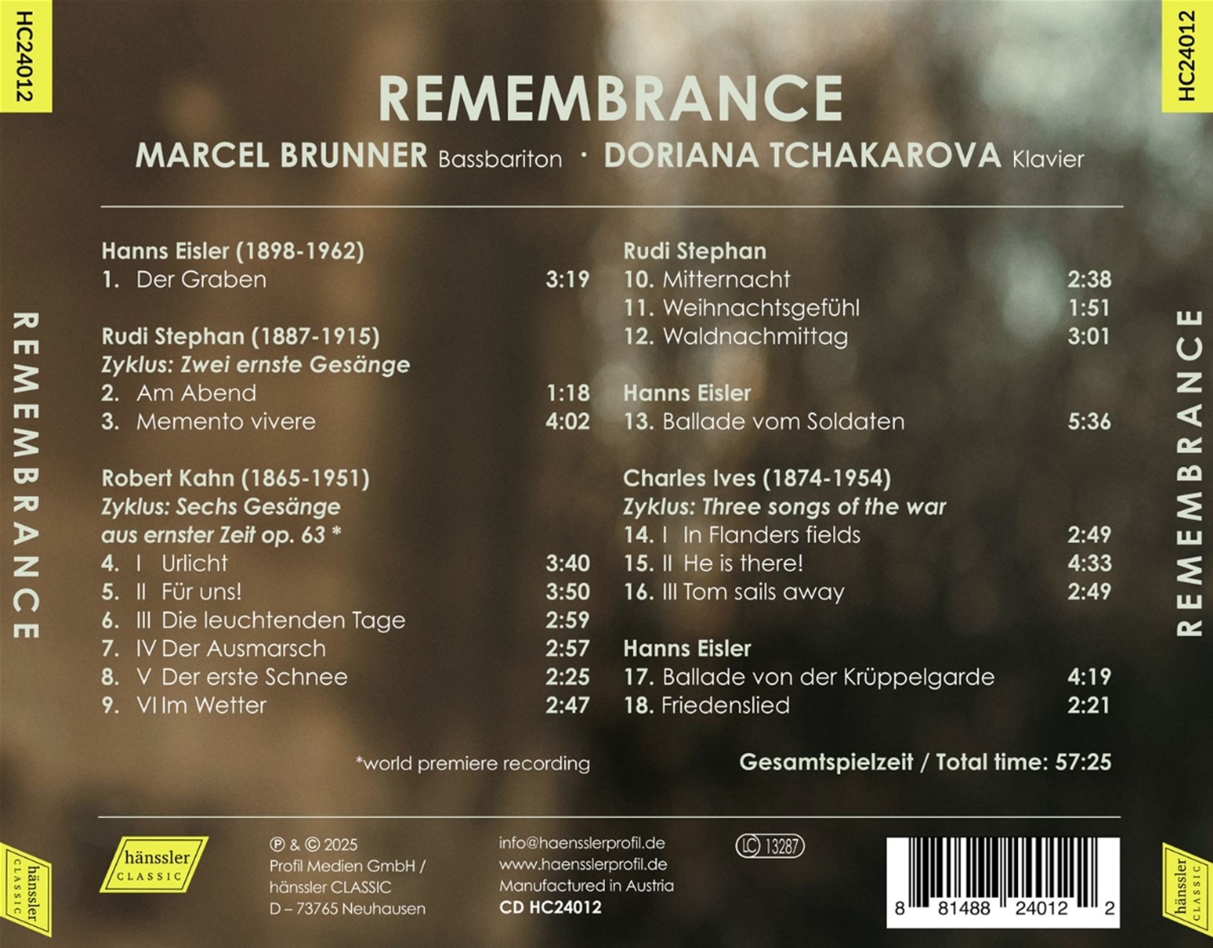 - Marcel Brunner (Bassbariton), Doriana Tchakarova (Klavier)
