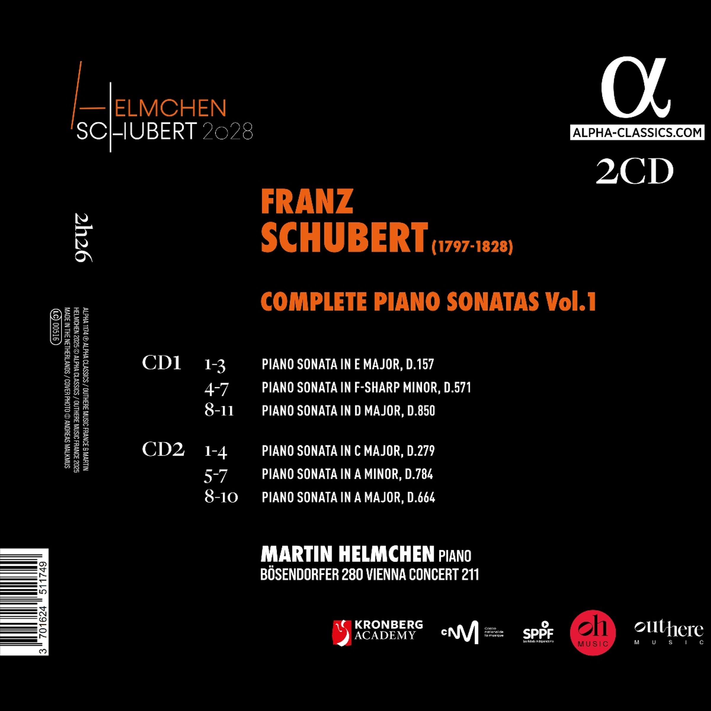 Mit der Gesamteinspielung von Schuberts Klaviersonaten widmet sich Martin Helmchen nun einem neuen Soloprojekt, das aus vier Doppelalben bestehen wird, die bis zum Jahr 2028, dem zweihundertsten Todestag des Komponisten, erscheinen werden. Um sich auf dieses Abenteuer einzulassen, hat Martin Helmchen bis zu seinem 40. Lebensjahr gewartet, denn seiner Meinung nach braucht ein Künstler Reife, um die Herausforderungen zu spüren, die die radikalen Kontraste in Schuberts Sonaten darstellen: "ständige, doch nie unnötig komplexe Virtuosität, die der nüchternen Innerlichkeit gegenübersteht, die überschwängliche Freude der Ländler und Anfälle von dramatischem Wahnsinn." Die Aufnahme eines Gesamtwerks bedeutete auch, die Partituren sorgfältig zu studieren und sich mit der Frage zu befassen, welche Satze der Komponist unvollendet ließ, ob man an dem Punkt aufhören sollte, an dem Schubert mit dem Komponieren aufhörte, weil ihm entweder die Zeit davonlief oder er nicht genug Geld hatte, um Notenpapier zu kaufen? Helmchen hat sich entschlossen, diese Sätze zu vervollständigen, inspiriert durch die Aufnahmen und vor allem die Analysen des bedeutenden Pianisten Paul Badura-Skoda. Dieser erste Band enthält Sonaten, die zwischen 1815 (Schubert war 18) und 1825 komponiert wurden. Der gesamte Zyklus wurde auf einem Bösendorfer-Flügel in der Kronberg Academy aufgenommen.