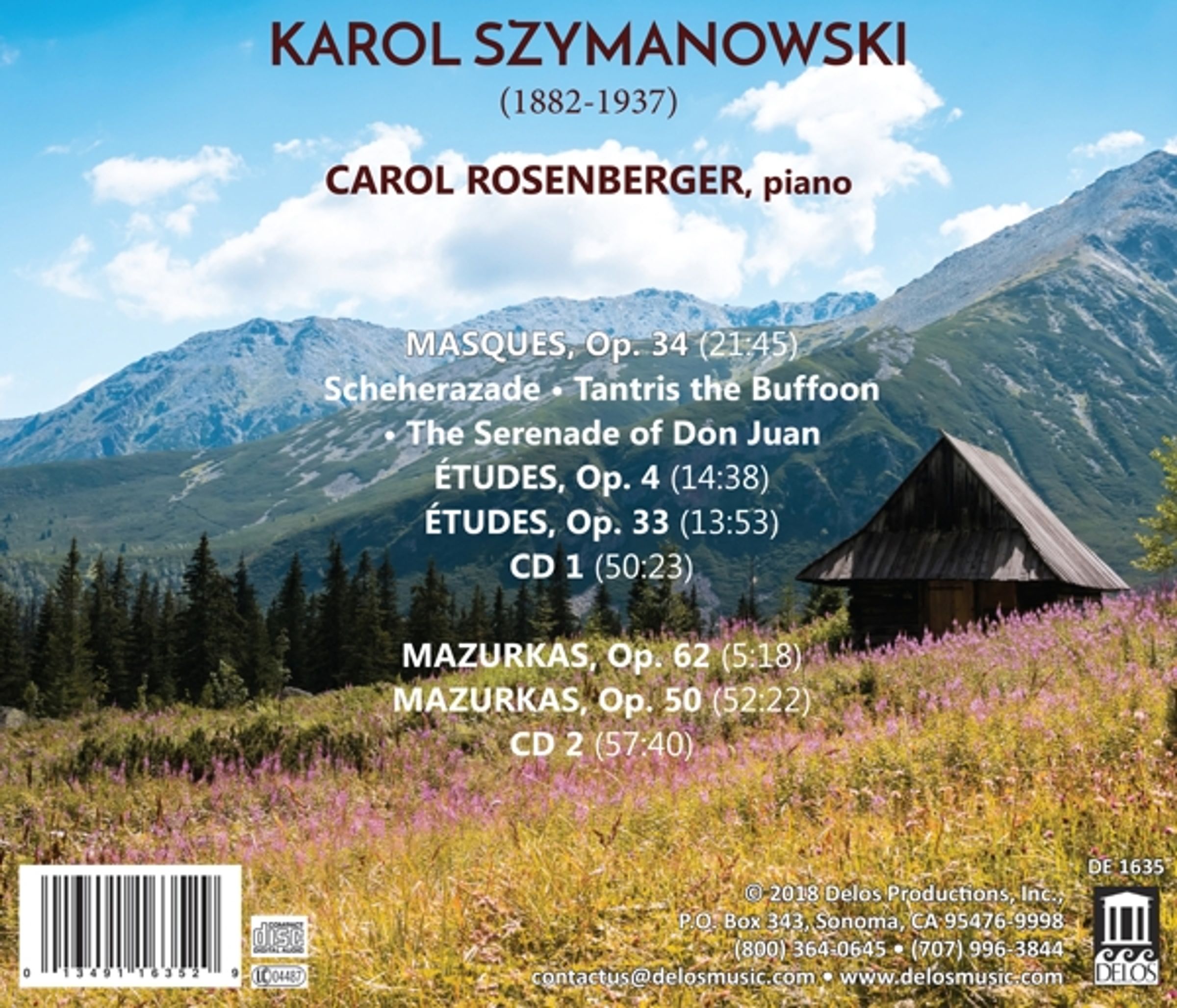 Auf diesem neuen Doppel-CD-Set sind nun ihre faszinierenden Darbietungen der kompletten Szymanowski-Mazurkas sowie der Masques und Études erhältlich – Darbietungen, die die Pianistin als »Pionierin bei der Wiederentdeckung Szymanowskis in der modernen Ära« auszeichneten (Komponist Mark Abel).