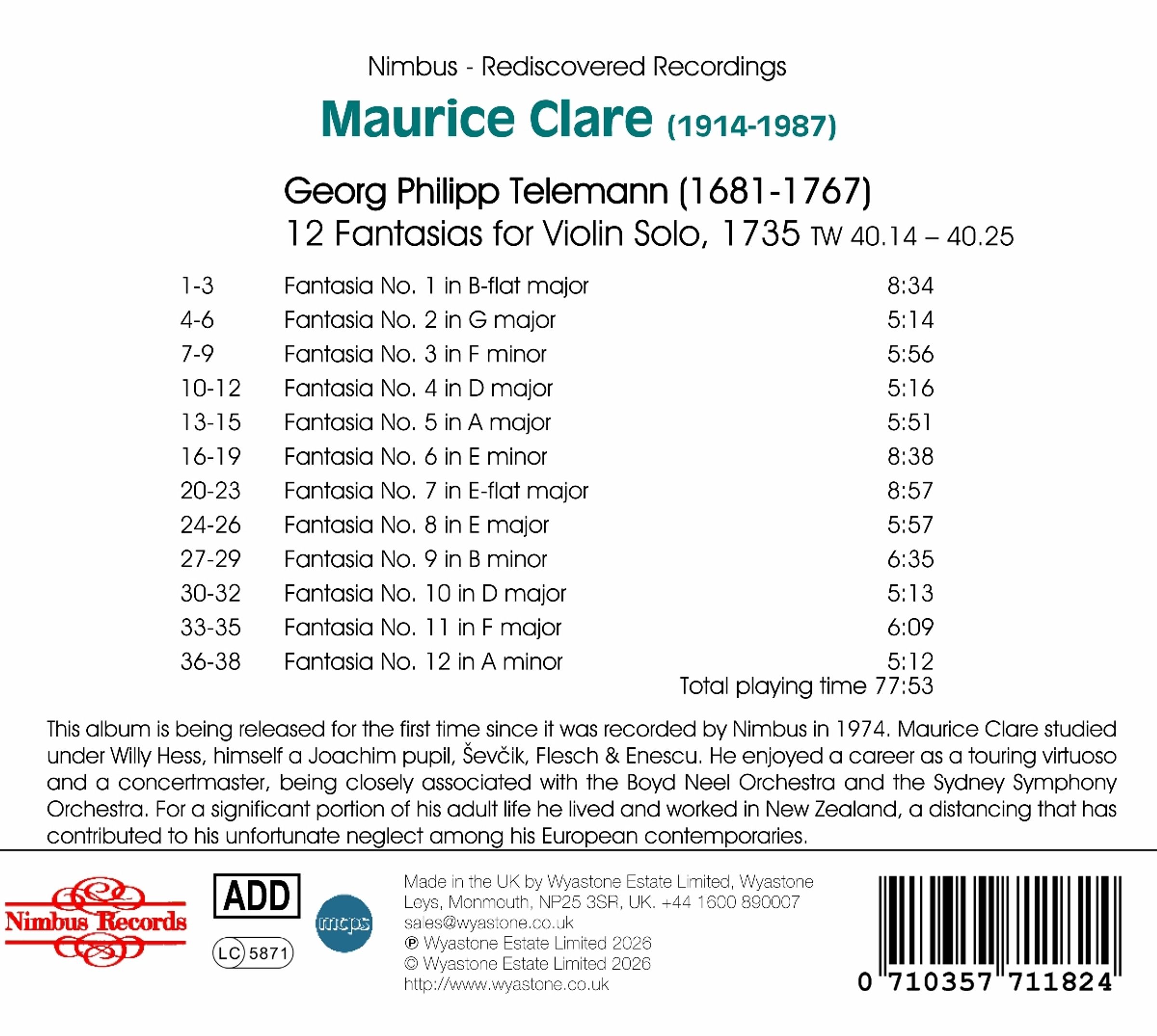 keine Informationen darüber, wie und warum Violinist Maurice Clare in das Nimbus-Studio in Birmingham kam und warum Georg Philipp Telemanns Musik das gewählte Repertoire war. Aus den Protokollen der Aufnahme von 1974 geht hervor, dass die Fantasien Nr. 1-5 am Montag, dem 26. August, aufgenommen wurden, die Fantasien 7-12 am Dienstag, dem 27. August, gefolgt von einem Tag ohne Aufnahme. Die Fantasie Nr. 6 wurde am Donnerstag, dem 29. August