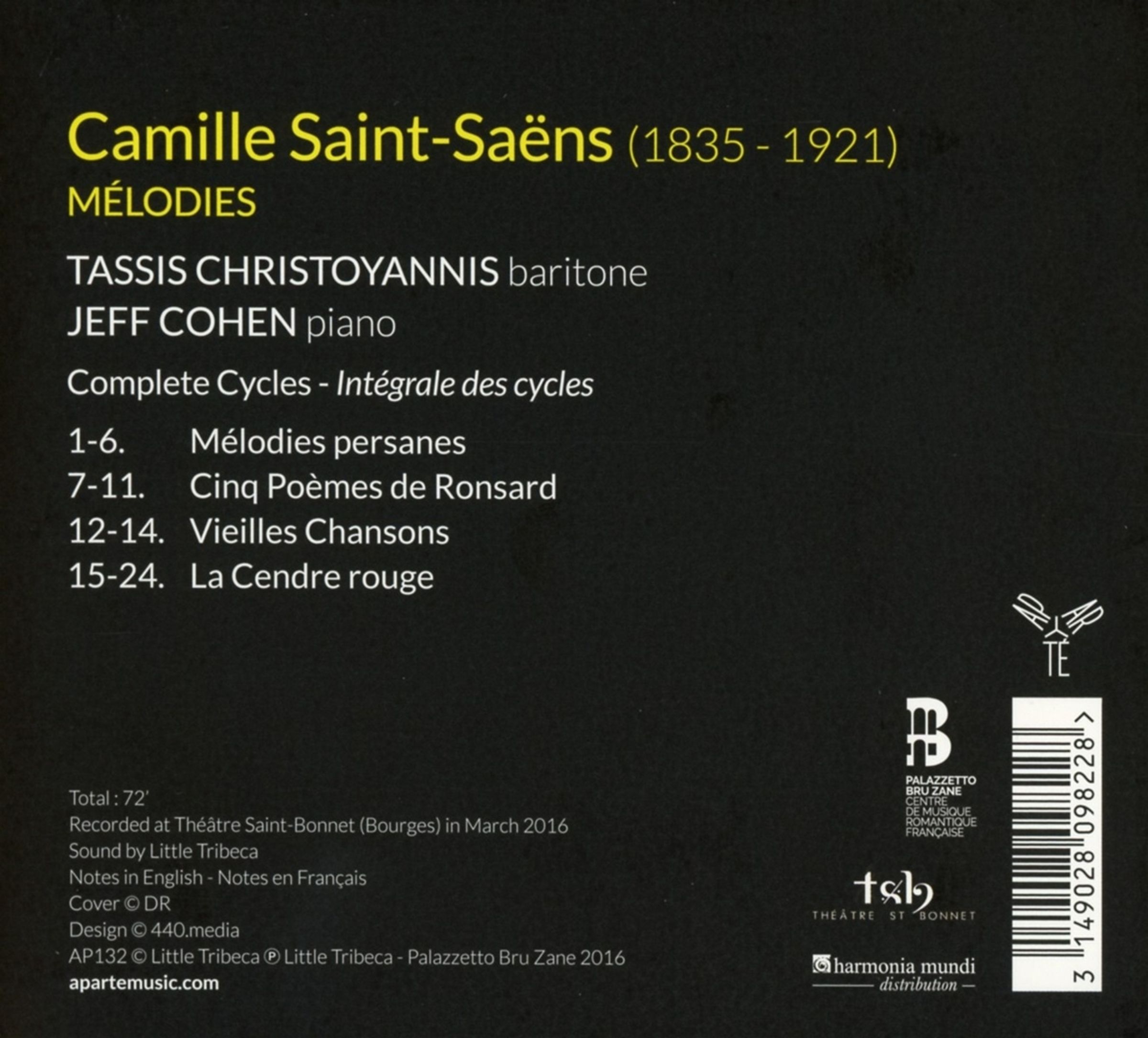 Melodies persanes; 5 Poemes de Ronsard; Vieilles Chansons; La Cendre rouge