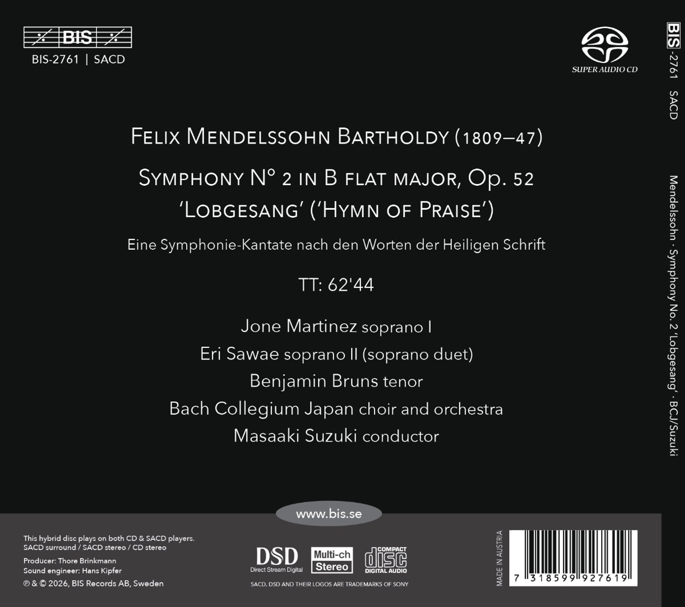Felix Mendelssohn Bartholdy: Symphonie Nr.2 "Lobgesang" auf Super Audio CD