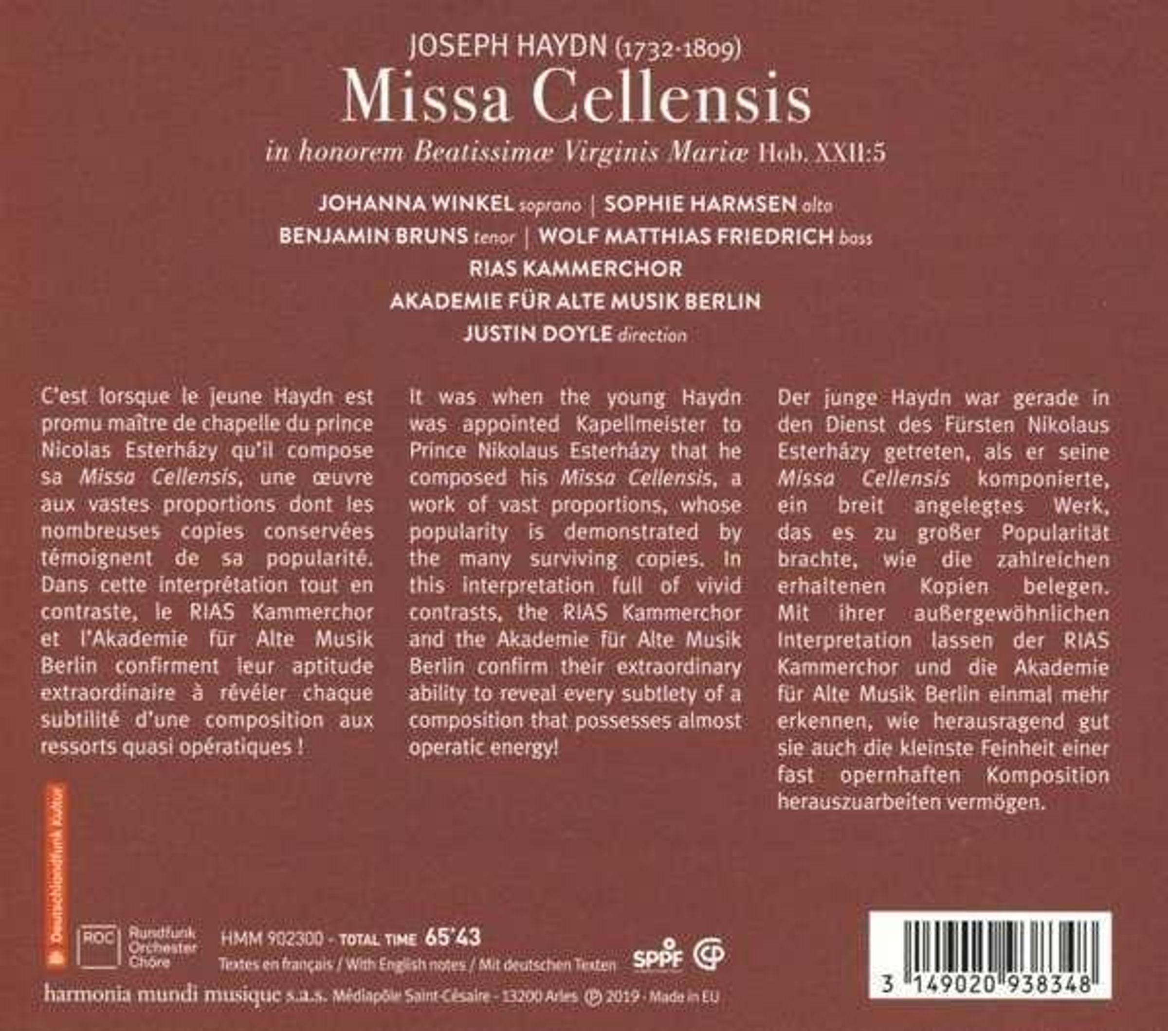 Der junge Haydn war gerade in den Dienst des Fürsten Nikolaus Esterházy getreten, als er seine Missa Cellensis komponierte, ein breit angelegtes Werk, das es zu großer Popularität brachte, wie die zahlreichen erhaltenen Kopien belegen. Mit ihrer außergewöhnlichen Interpretation lassen der RIAS Kammerchor und die Akademie für Alte Musik Berlin einmal mehr erkennen, wie herausragend gut sie auch die kleinste Feinheit einer fast opernhaften Komposition herauszuarbeiten vermögen.