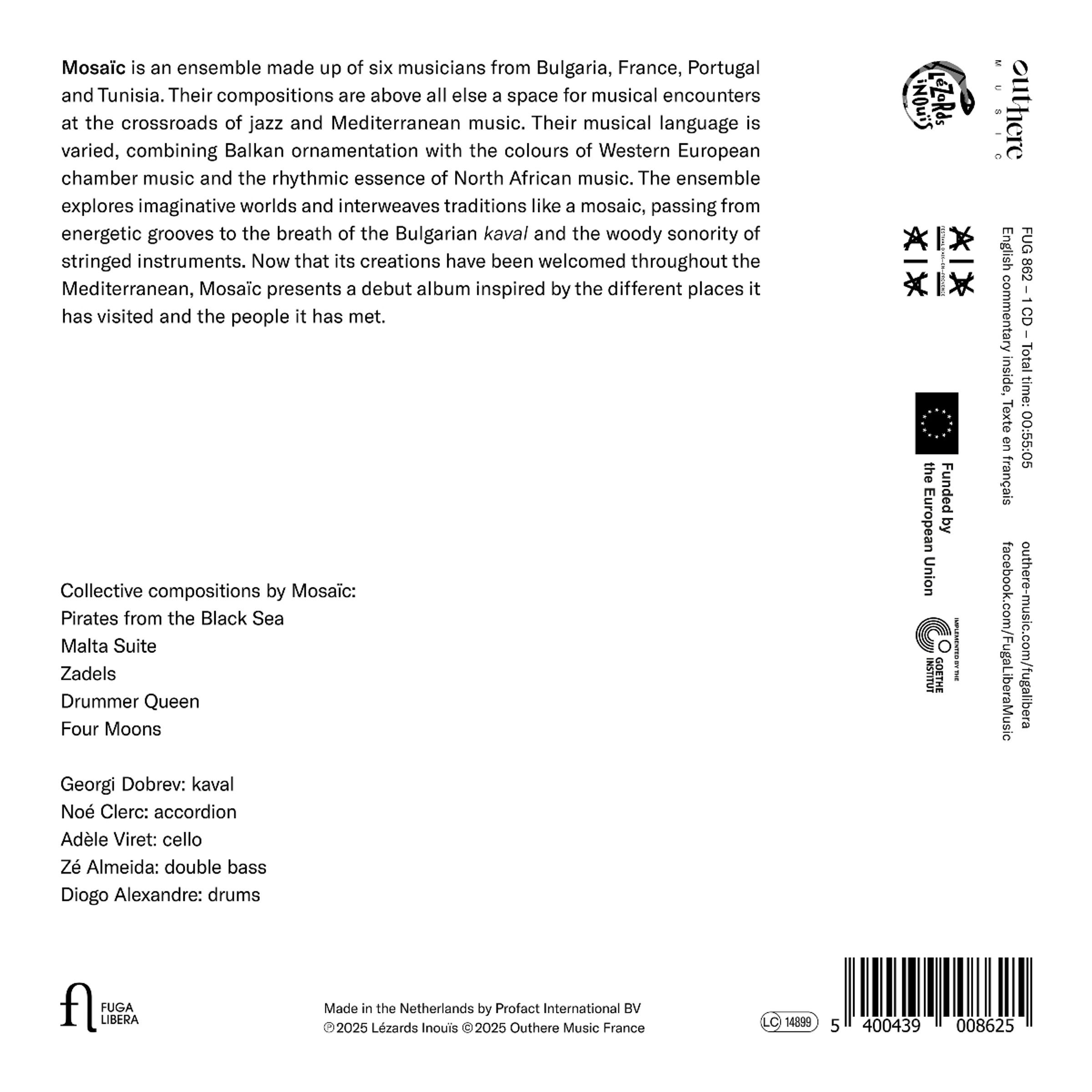 - Mosaic (Adele Viret, Cello; Diogo Alexandre, Drums; Georgi Dobrev, Kaval; Hamdi Jammoussi, Percussion; Noe Clerc, Akkordeon; Ze Almeida, Kontrabass)