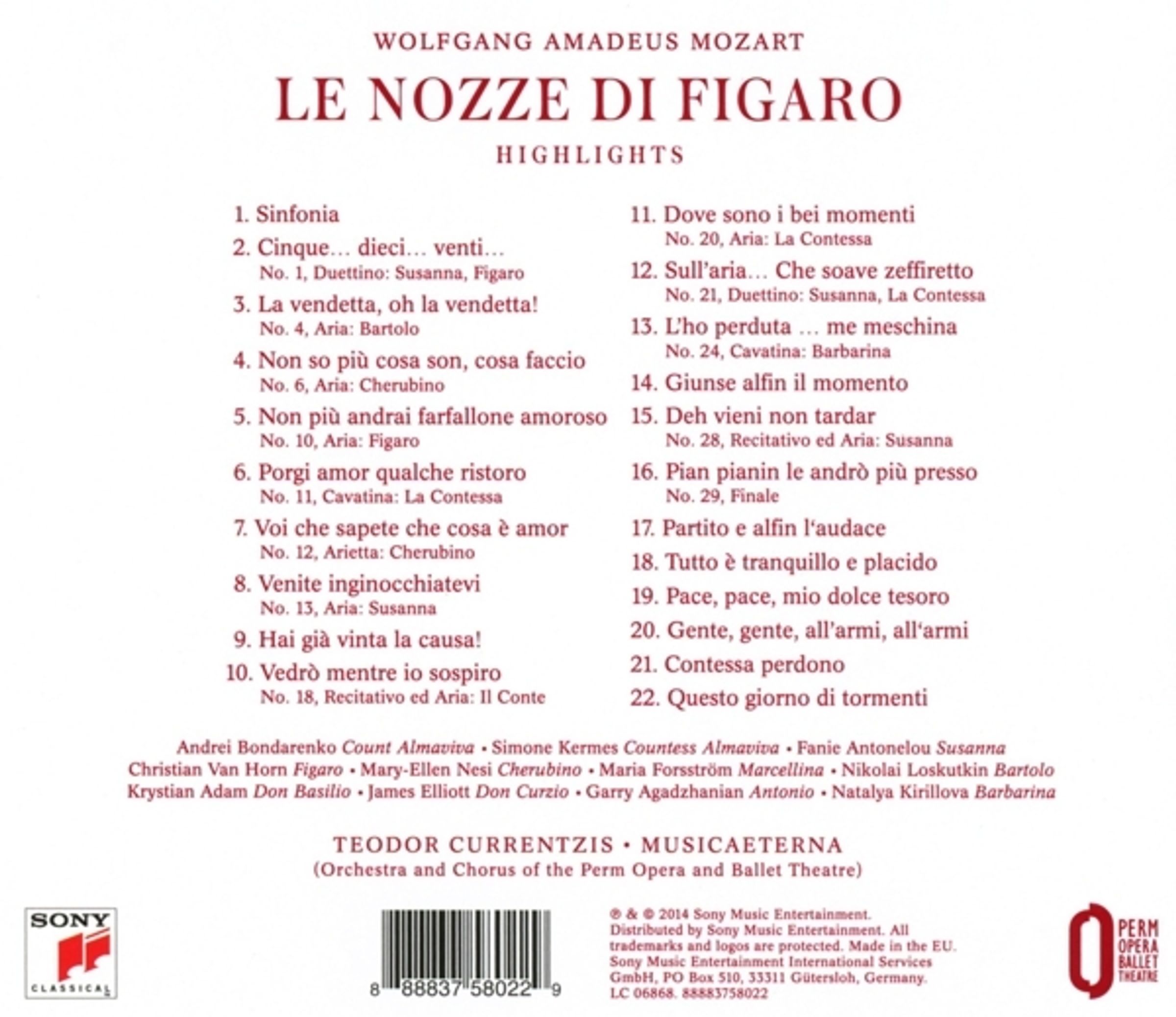 Mozarts »Le Nozze di Figaro« in der Interpretation von Teodor Currentzis und dem Ensemble MusicAeterna wurde mit Spannung erwartet. Die Veröffentlichung ist die erste in einer Reihe mit den drei Da-Ponte-Opern Mozarts. Das Warten hat sich gelohnt: Eine der schönsten und heute populärsten Mozart-Opern präsentiert sich so transparent, leidenschaftlich, fetzig und innig wie nie zuvor.