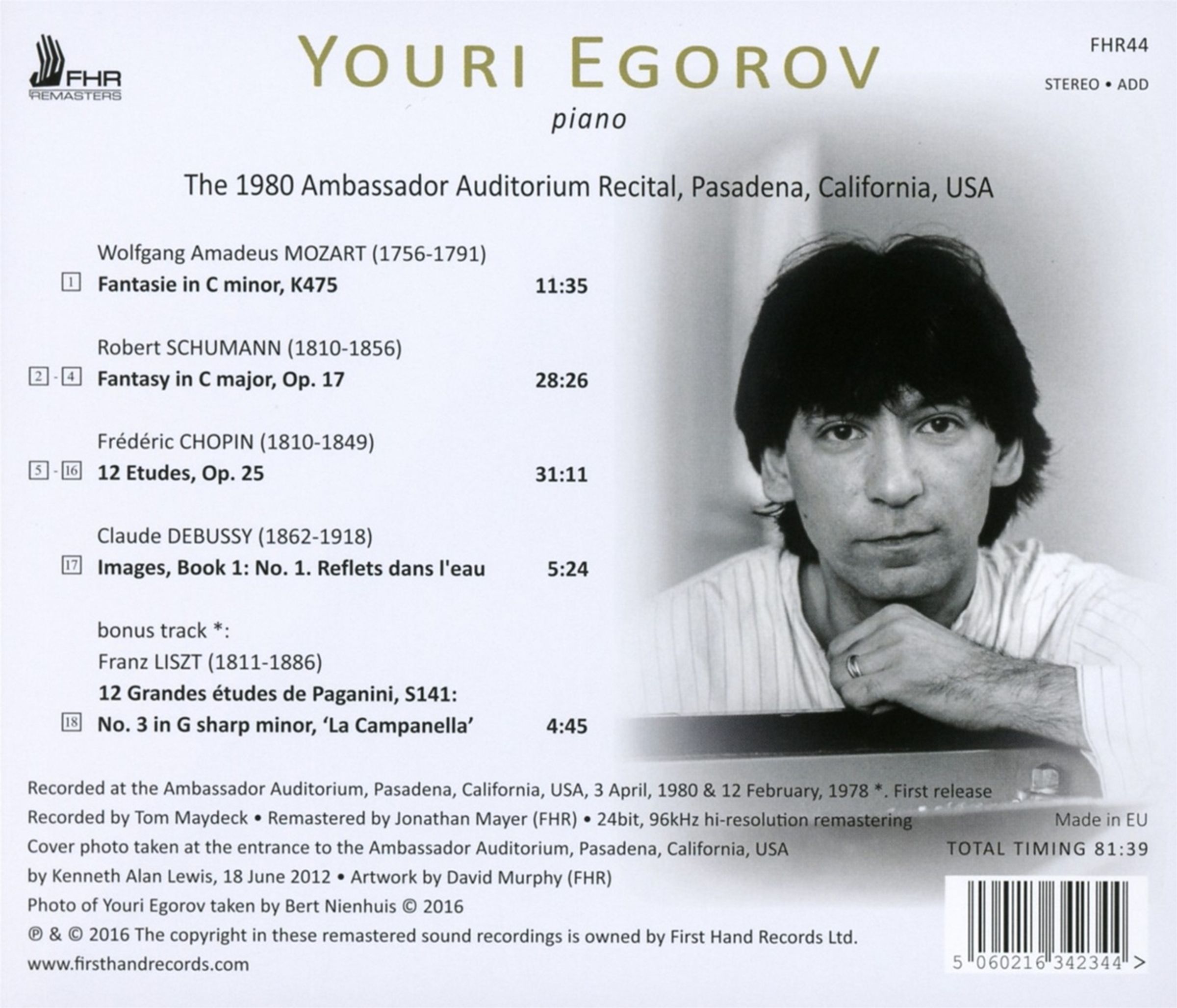 Der russische Pianist Youri Egorov war erster Favorit beim Halbfinale des Van Cliburn-Wettbewerbs 1977. Beginn der Karriere 1978, nach seinem Januar-Debüt in New York verglichen ihn die Kritiker mit Horowitz, Richter und Rachmaninov.