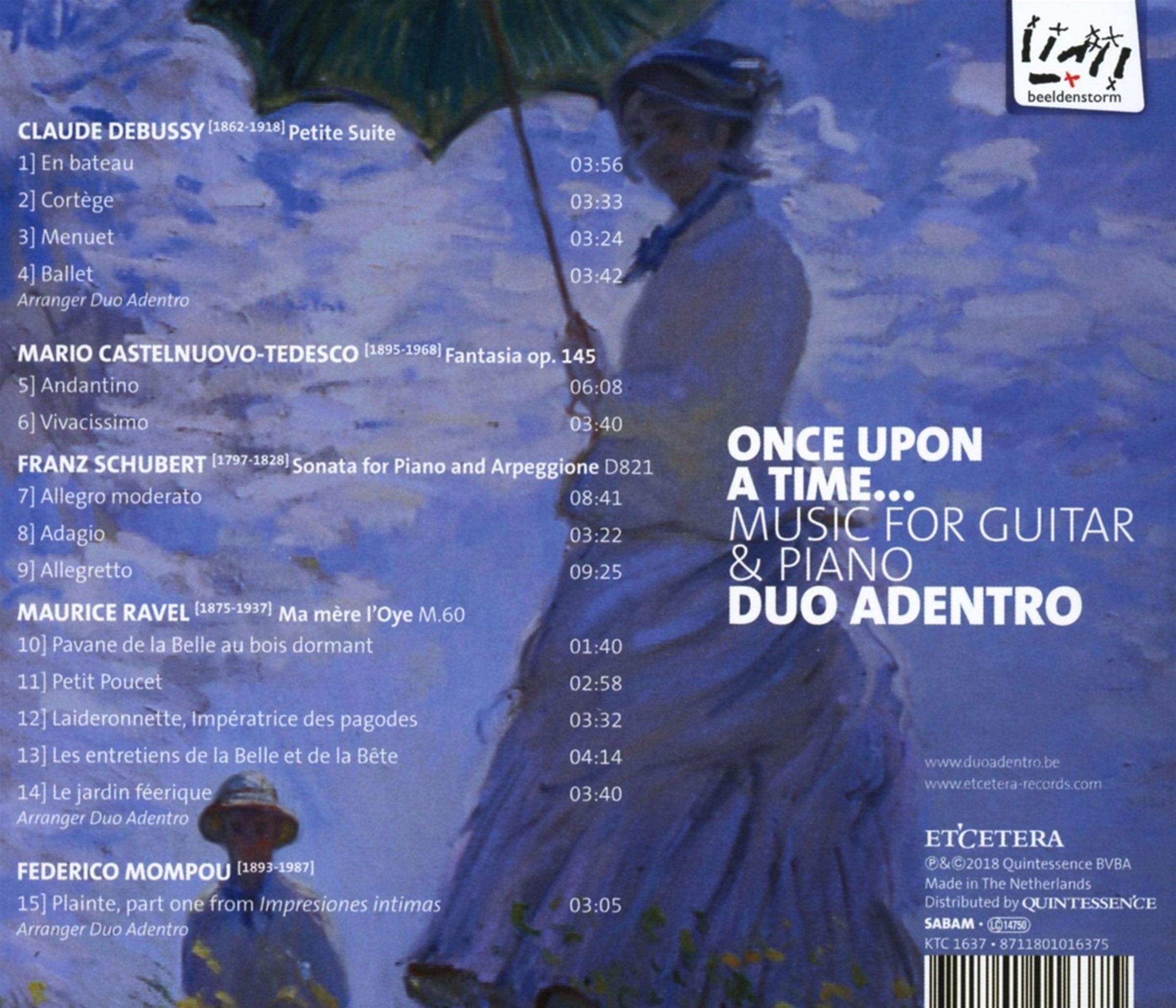Vier Jahre später sind wir tiefer in den Zauberwald der Musik für Gitarre und Klavier vorgedrungen, als wir es uns je hätten träumen lassen. Diese CD, unsere erste Aufnahme, erzählt die Geschichte der musikalischen Reise, die begann, als wir die Fantasia von Mario Castelnuovo-Tedesco entdeckten, und die uns schließlich zu einer sehr persönlichen Transkriptionsarbeit mit Musik von Debussy und Ravel führte.