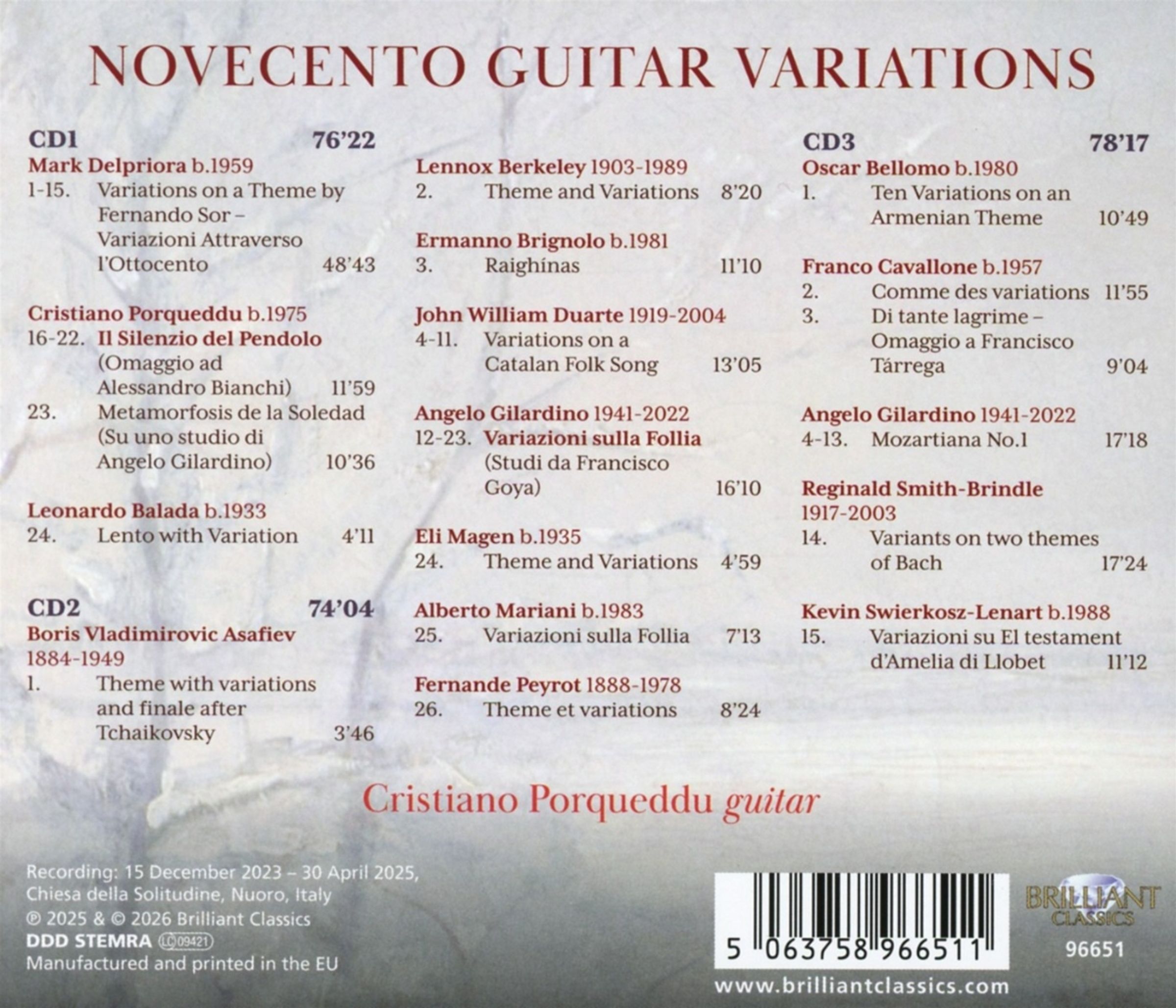 Cristiano Porqueddu - Novecento Guitar Variations auf 3 CDs
