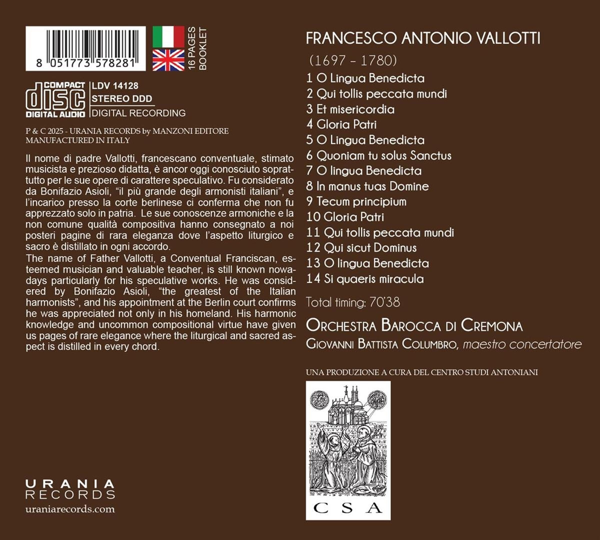 Francesco Antonio Vallotti: O Lingua Benedicta auf CD