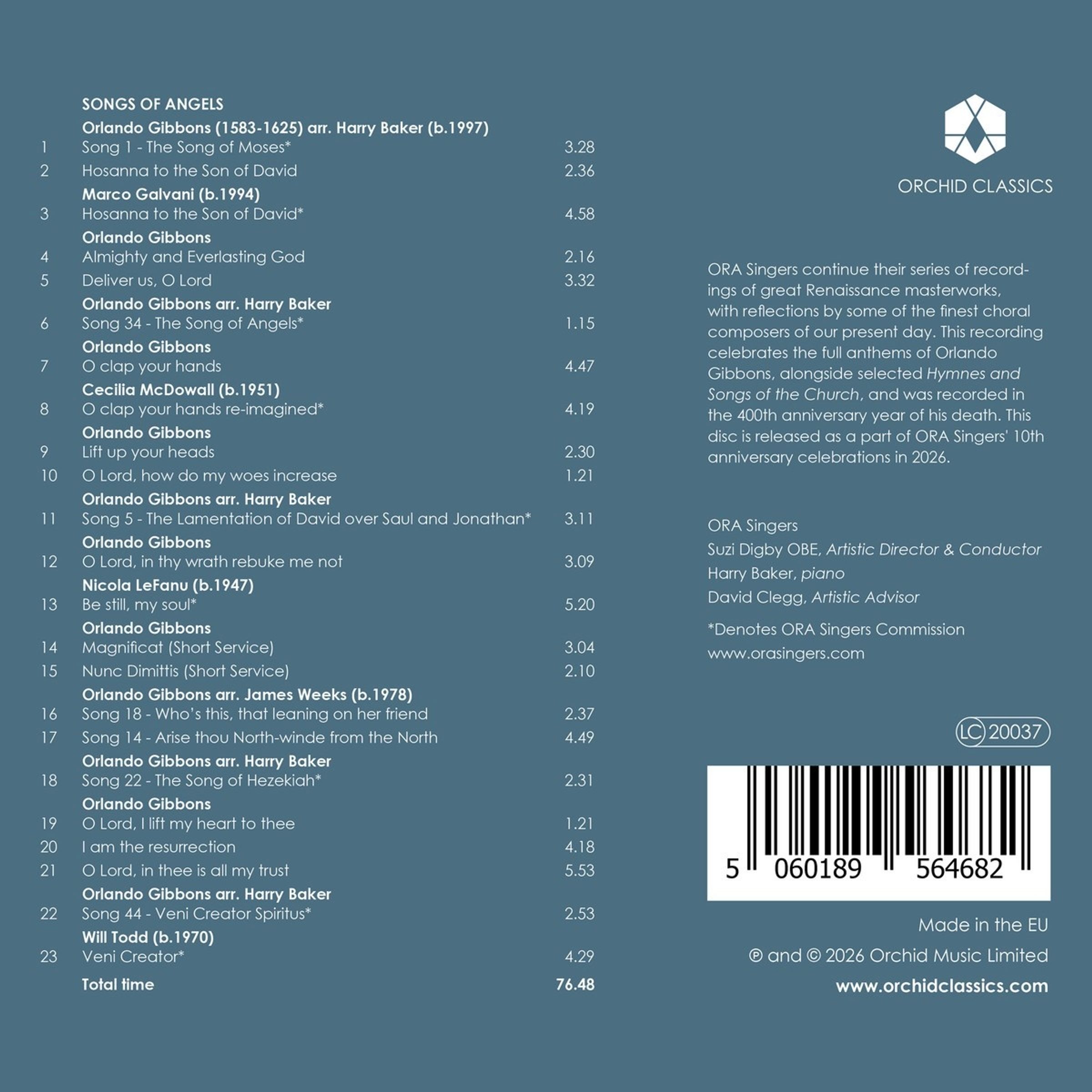 Orlando Gibbons: Hosanna to the Son of God; Almighty and everlasting God; Deliver us, o Lord; O clap your Hands; Lift up your Hands; O Lord, how do my woes increase; O Lord, in thy wrath rebuke me not; Magnificat; Nunc dimittis; O Lord, I lift ym Heart to Thee; I am the Resurrection; O Lord, in Thee is all my trust
