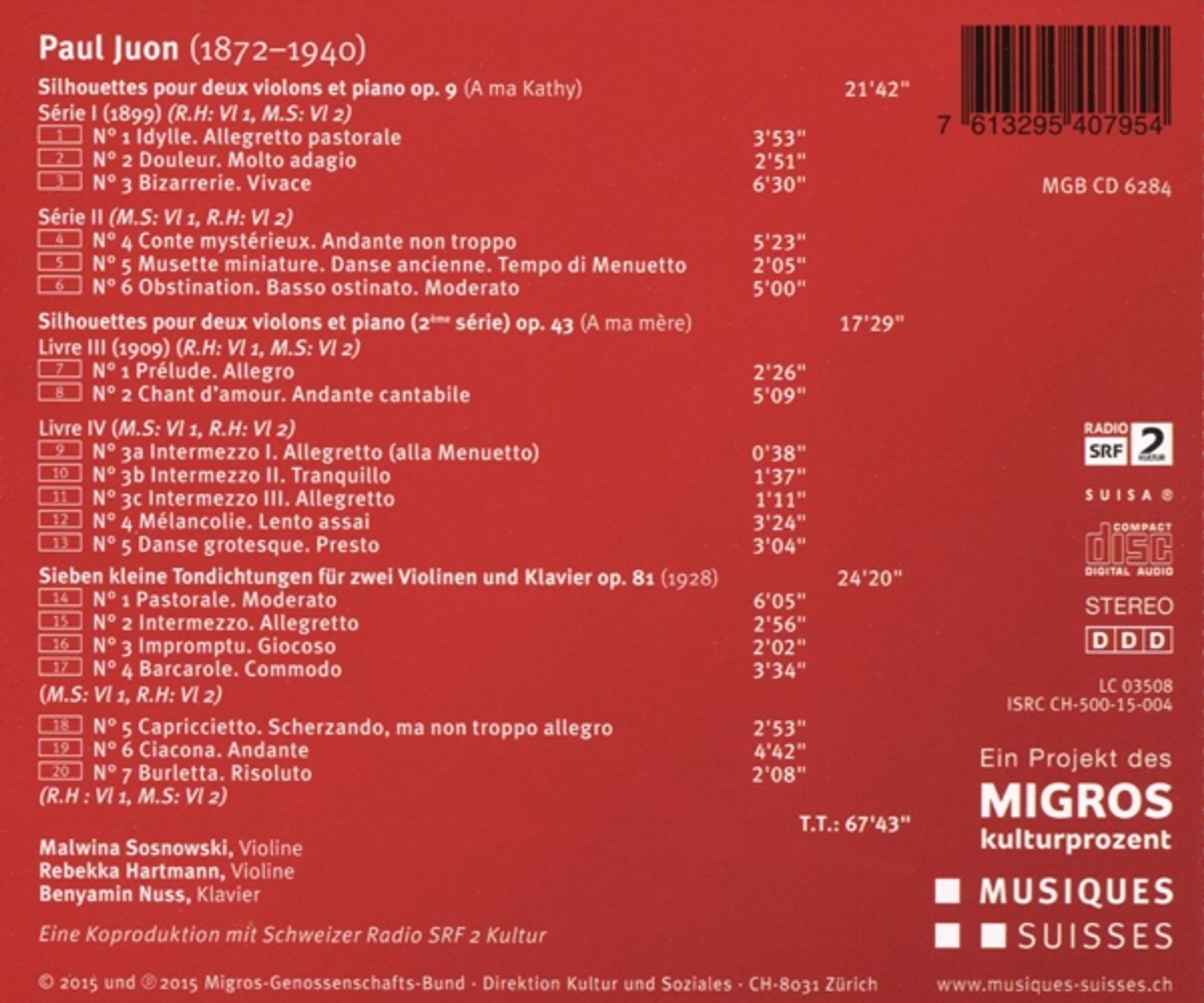 Paul Juon: Silhouettes für 2 Violinen & Klavier opp.9 & 43 auf CD