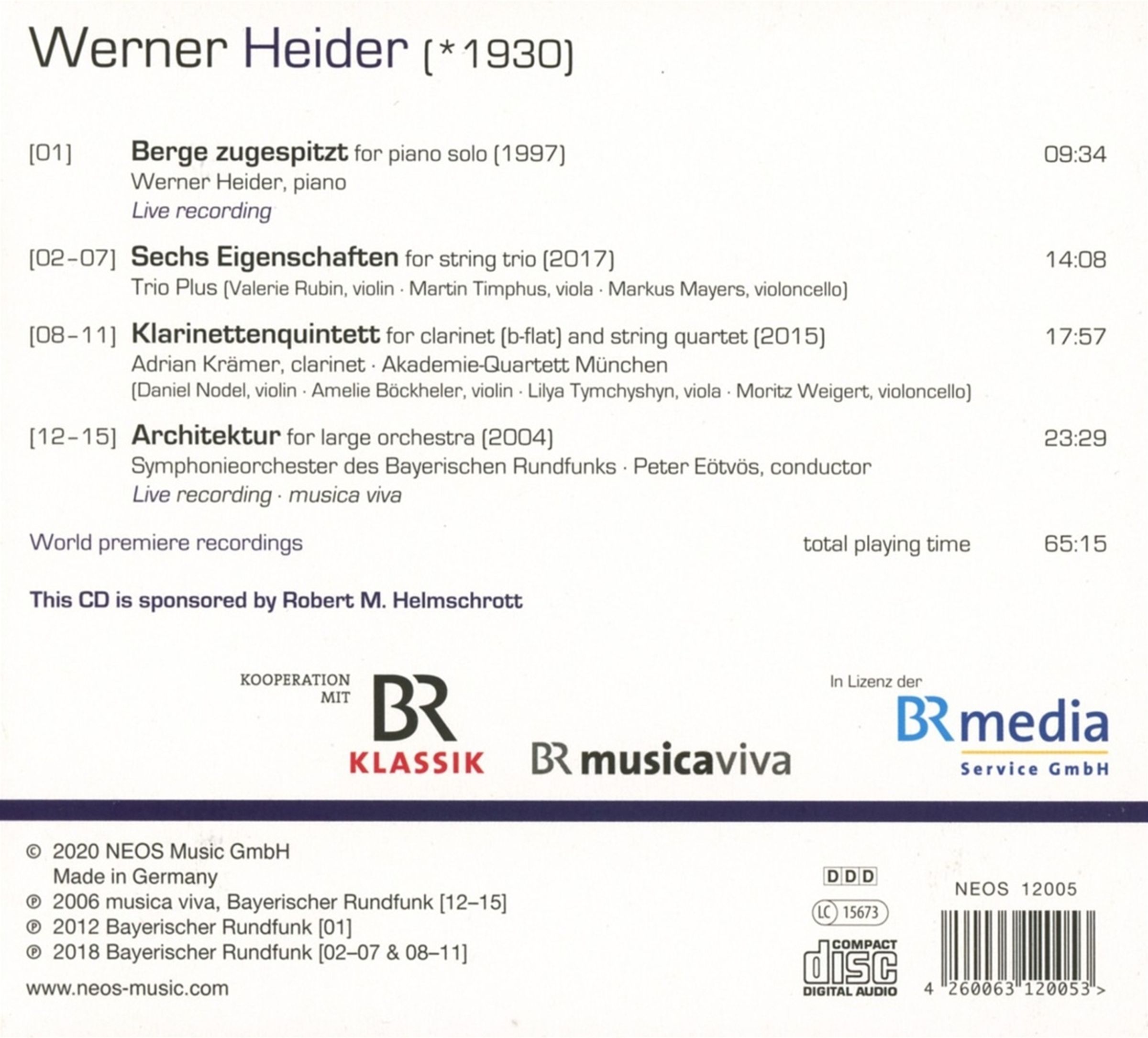 - Werner Heider (Klavier), Adrian Krämer (Klarinette), Trio Plus, Akademie-Quartett München, Symphonieorchester des Bayerischen Rundfunks, Peter Eötvös