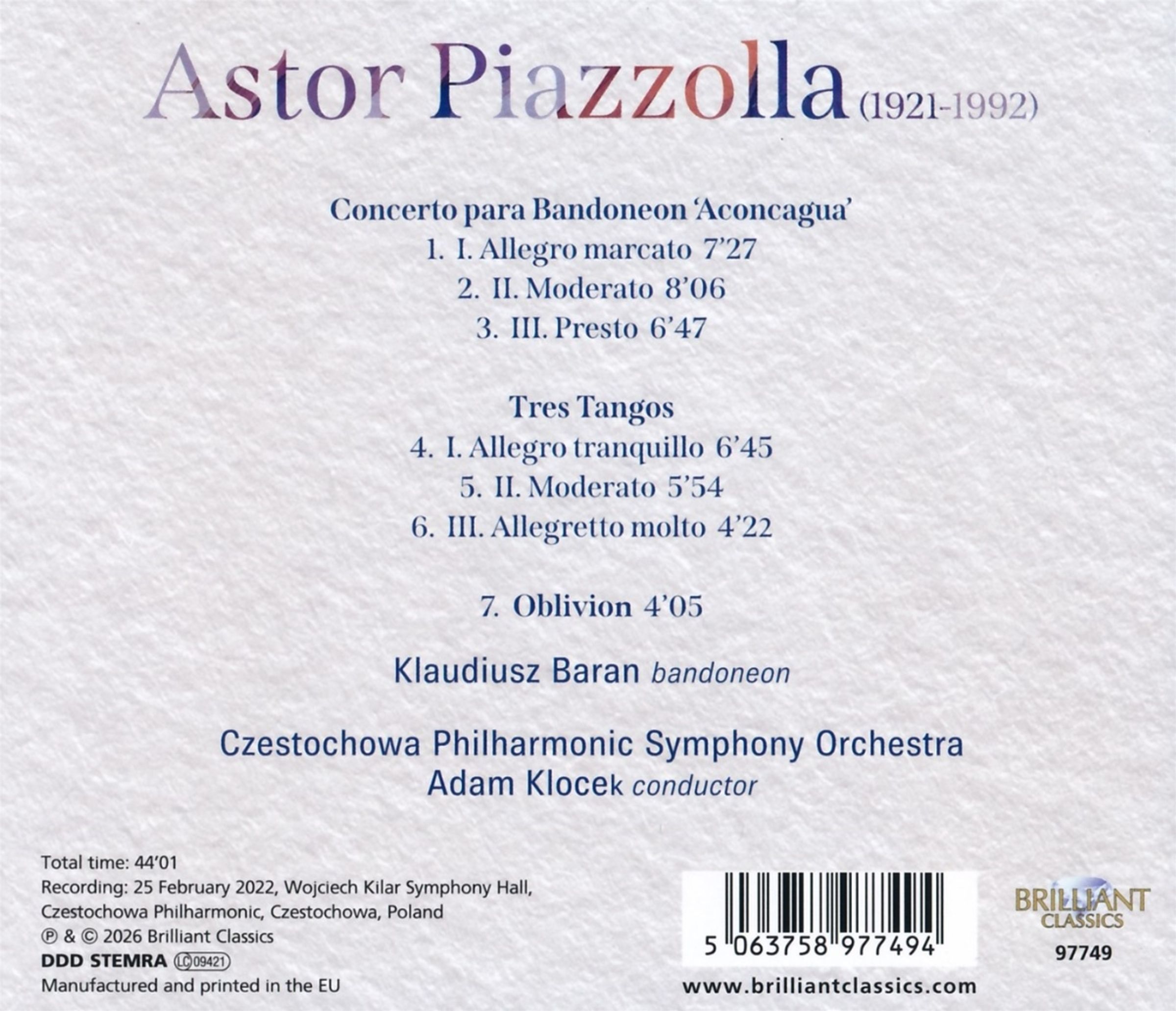- Klaudiusz Baran, Czestochowa Philharmonic Symphony Orchestra, Adam Klocek