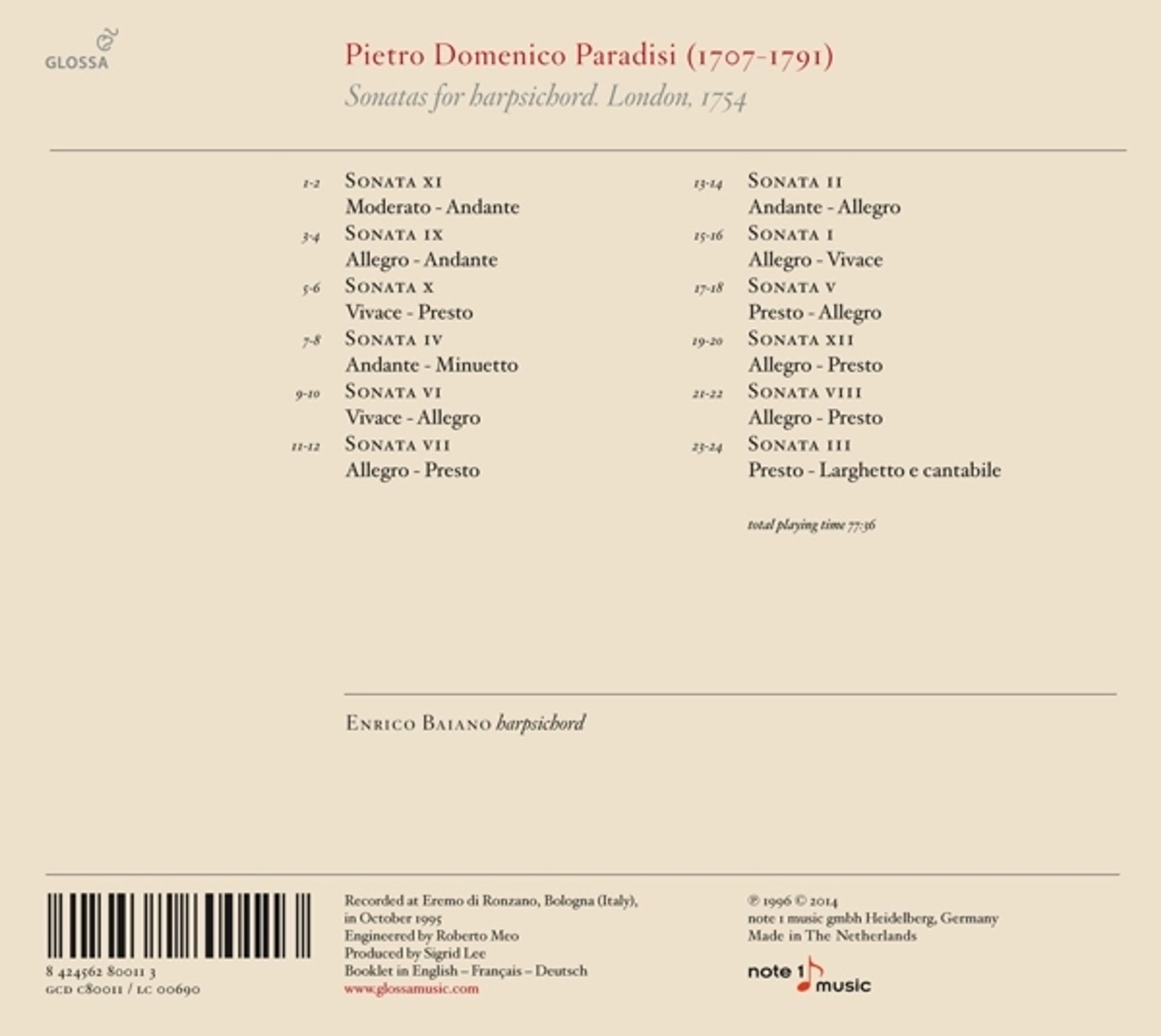 Pietro Domenico Paradies (Paradisi): Cembalosonaten Nr.1-12 (London 1754) auf CD