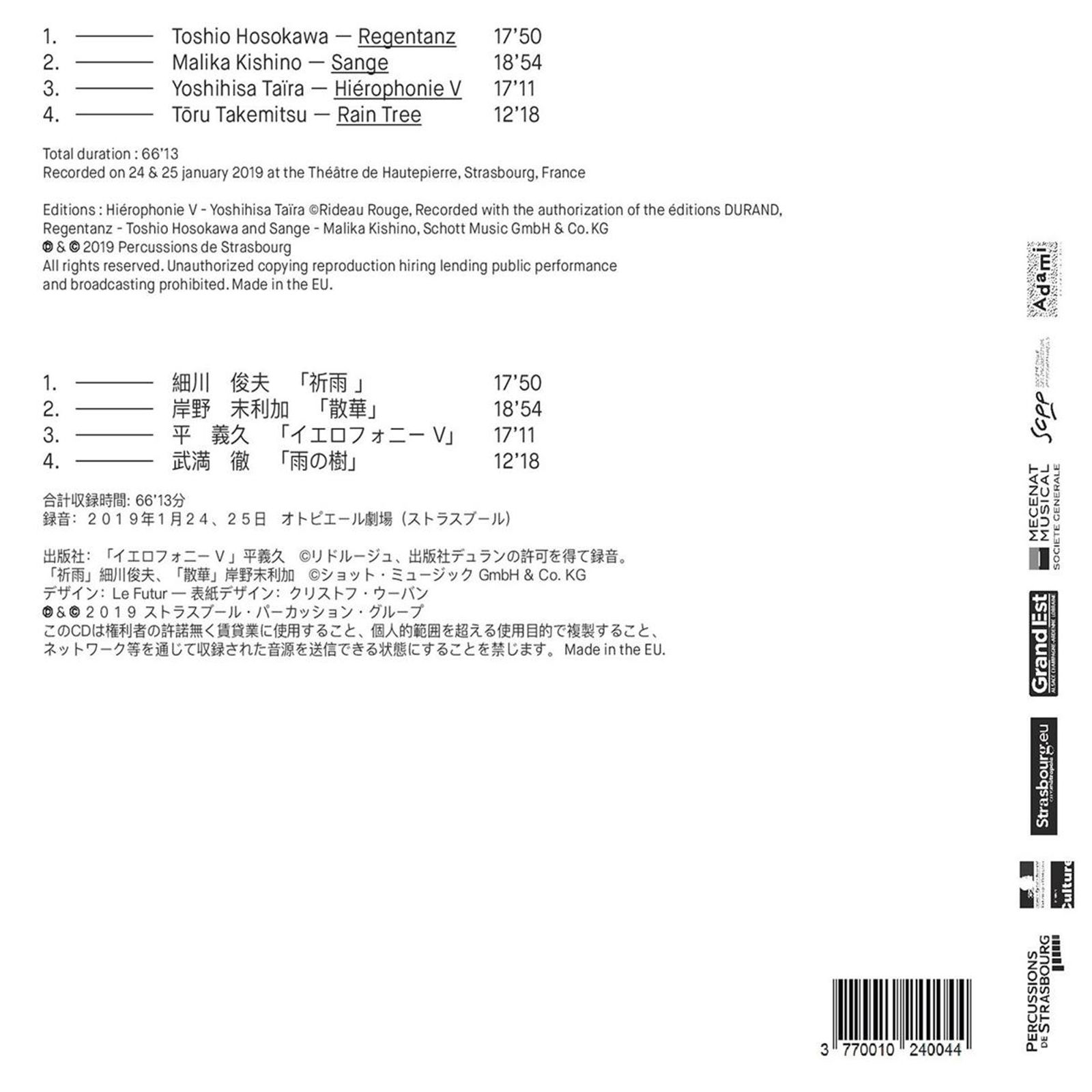 Les Percussions de Strasbourg - Regentanz / Sange / Hierophonie V / Rain Tree