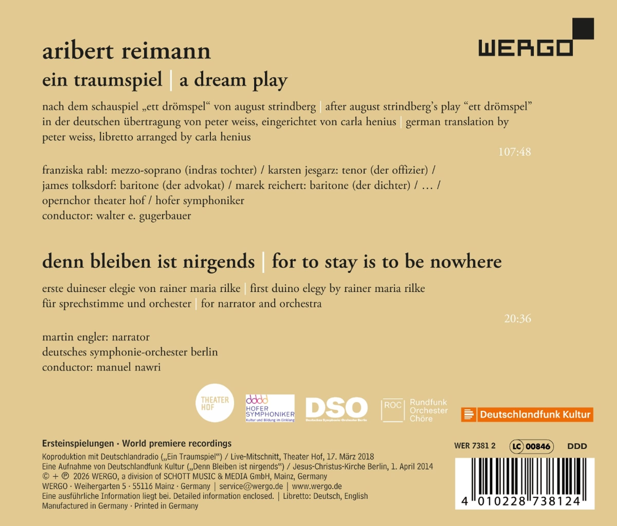 Aribert Reimann (1936-2024): Ein Traumspiel, 2 CDs, 2 CDs