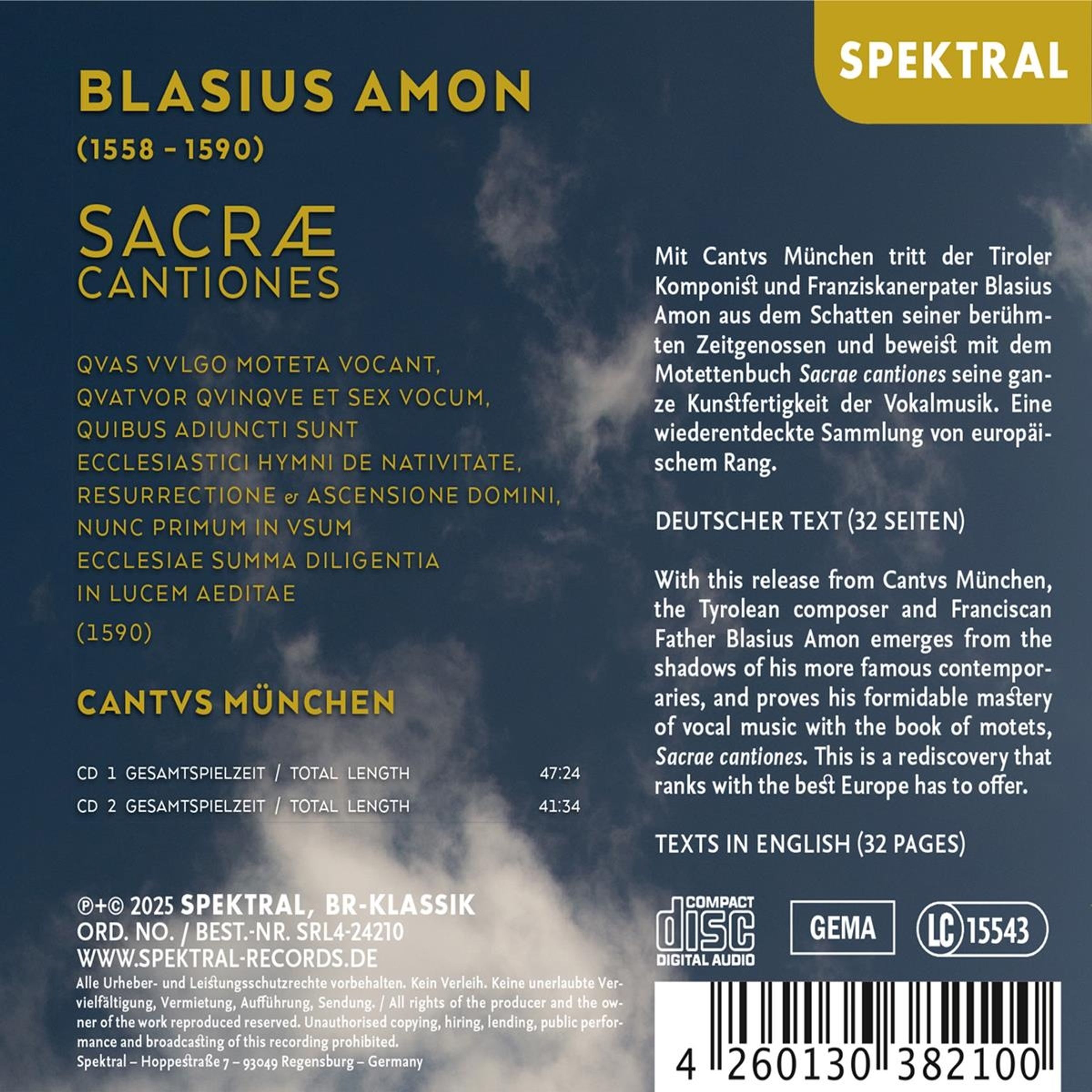 Blasius Ammon: Sacrae Cantiones (Motetten) auf 2 CDs