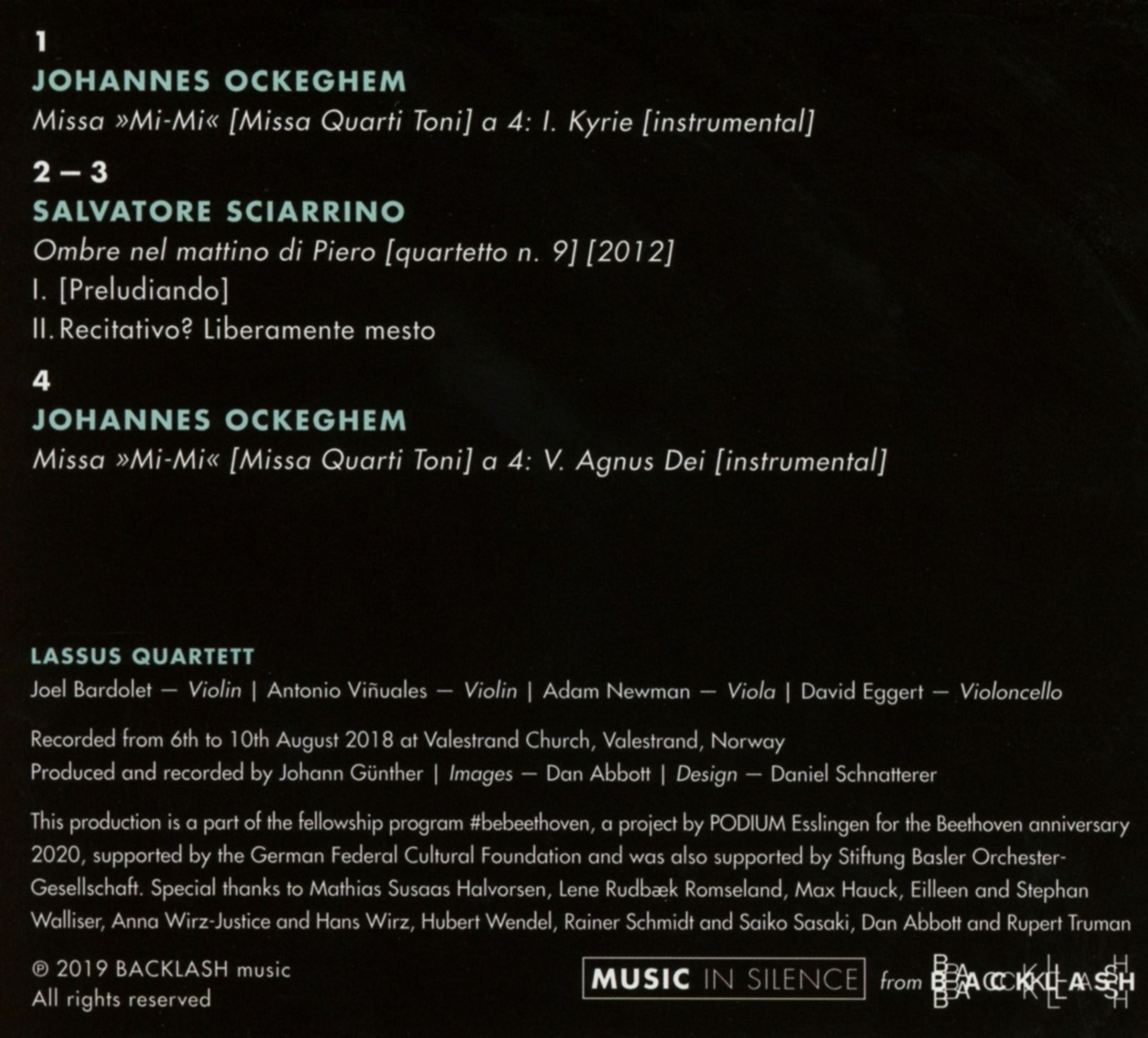 Sciarrino schrieb "Ombre nel mattino" für die Jahrtausendfeier der toskanischen Stadt Sansepolcro. In seinen eigenen Notizen zu dem Stück verweist der Komponist auf die schwindende Bedeutung antiker Schönheit und weist auf die Notwendigkeit hin, Raum für die Moderne zu schaffen. Da er nicht weiß, was die Zeit überdauern wird, welche Bedeutung man dem Werk später zuschreiben wird oder ob man sich überhaupt an es erinnern wird, ist der Schlüsselbegriff, auf den er zurückkommt, die Zeit. Bei der Paarung eines Werks aus der Renaissance mit einem Werk aus dem 21. Jahrhundert geht es im Kern auch um Zeit - eine Paarung, die den musikalischen Inhalt der beiden Werke, die durch Stille mit Zeit und Raum spielen, konzeptionell widerspiegelt. Für mich stimmt das Konzept jedoch nicht ganz mit der musikalischen Paarung überein. Beim Anhören der CD hat man nicht das Gefühl eines Zusammenhalts, eines reibungslosen musikalischen Verlaufs, der sich über die Jahrhunderte erstreckt, sondern es ist ein eher holpriger Übergang.