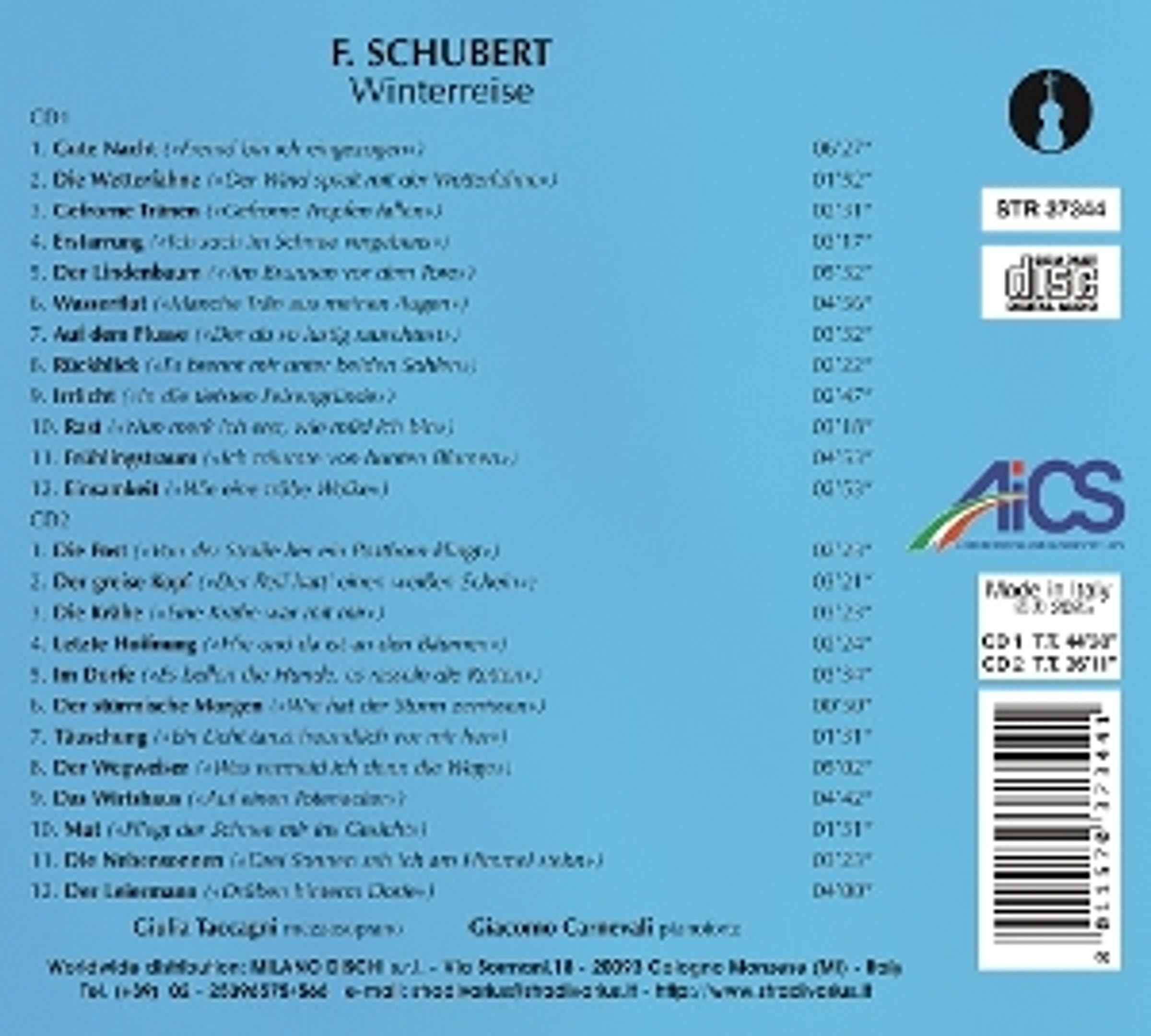 "Die Winterreise" von Franz Schubert ist ein zeitloses Werke der klassischen Musik. Sie inspiriert immer wieder neue Generationen von Künstlerinnen und Künstlern zu aktuellen Einsichten. Schuberts Seelenreise scheint ein urmenschliches Empfinden widerzuspiegeln. So ist es nicht verwunderlich, dass die Mezzosopranistin Giulia Taccagni und der Pianist Giacomo Carnevali die Frage nach der Bedeutung der "Winterreise" aus einer ganz persönlichen Perspektive beantworten: "Auch auf die Gefahr hin, das Offensichtliche zu sagen: Es war eine Reise - wenn auch eine Reise ohne wirkliches Ziel. Die Tiefe dieser Everest-ähnlichen Partitur bot bei jeder Lektüre neue Einblicke und frische Facetten. Folglich gab es nie - und gibt es trotz jahrelanger Vorbereitung und Live-Aufführungen immer noch nicht - ein echtes Gefühl der Vollendung, keinen Punkt, an dem wir sagen konnten, wir hatten jedes Lied "fertig studiert". Und vielleicht ist auch die Reise des Wanderers ohne Ziel. Eine physische Wanderung durch eine kalte und gleichgültige, wenn nicht sogar offen feindselige Natur, aber auch ein psychologischer Weg durch die schwierigen Phasen der Verarbeitung eines Verlustes - ein Prozess, der in Wahrheit niemals abgeschlossen ist. Der Reisende klammert sich an den Schmerz, den ihm eine Gesellschaft zugefügt hat, die ihn abgelehnt hat und weiterhin ablehnt, wie die bellenden Hunde, die sein Vorbeigehen ankündigen, und findet Zuflucht nur im Leiden der Erinnerung und in jedem müden Schritt durch den Schnee."