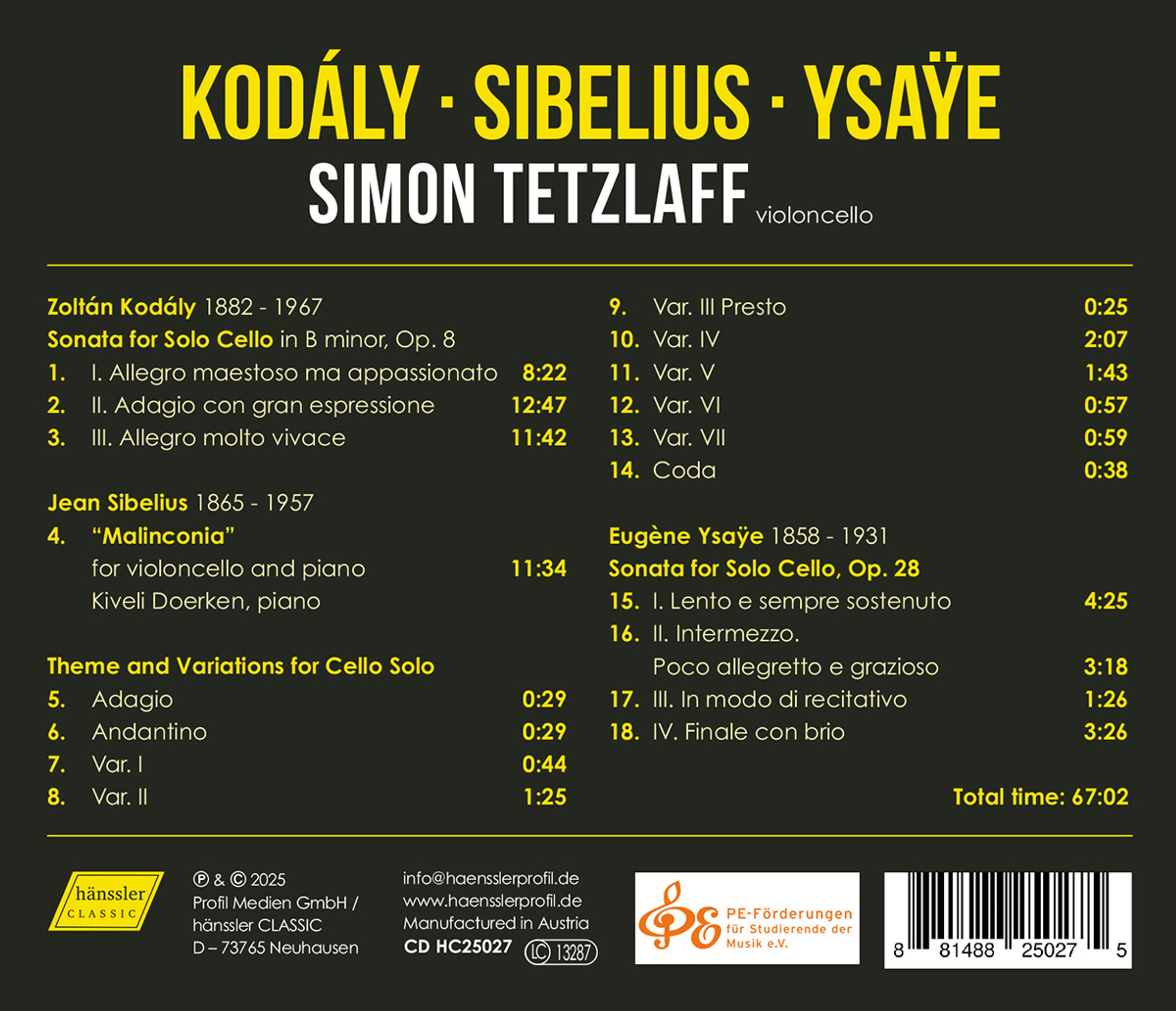 Simon Tetzlaff - Kodaly/Sibelius/Ysaye