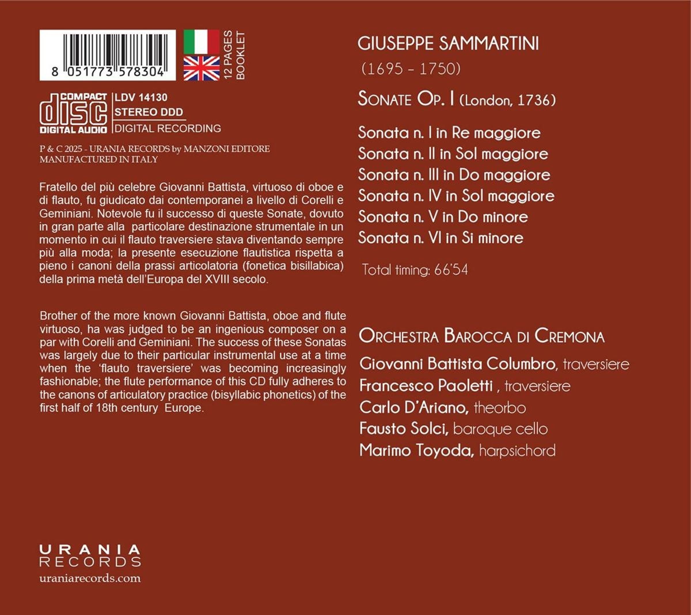 Giuseppe Sammartini: Sonaten op.1 Nr.1-6 für 2 Flöten auf CD