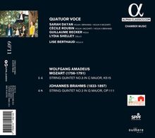Die Streichquintette von Mozart und Brahms gehören zu den absoluten Gipfelwerken der Kammermusikliteratur. Mit seiner dritten Einspielung für ALPHA beweist das Quatuor Voce im zehnten Jahr seines Bestehens, dass es zu den führenden französischen Kammermusikformationen gehört. Die Partie der zweiten Viola übernimmt mit der Bratschistin Lise Berthaud eine weitere herausragende französische Musikerin.