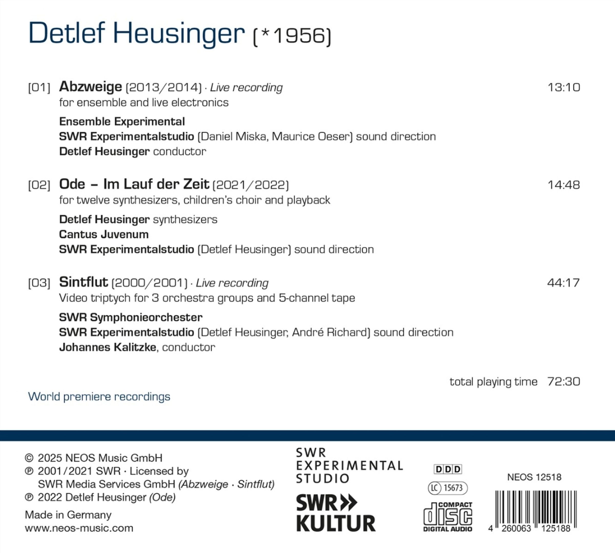 - Detlef Heusinger (Syntheziser), Ensemble Experimental, SWR Experimentalstudio, Cantus Juvenum, SWR Symphonieorchester, Johannes Kalitzke, Detlef Heusinger