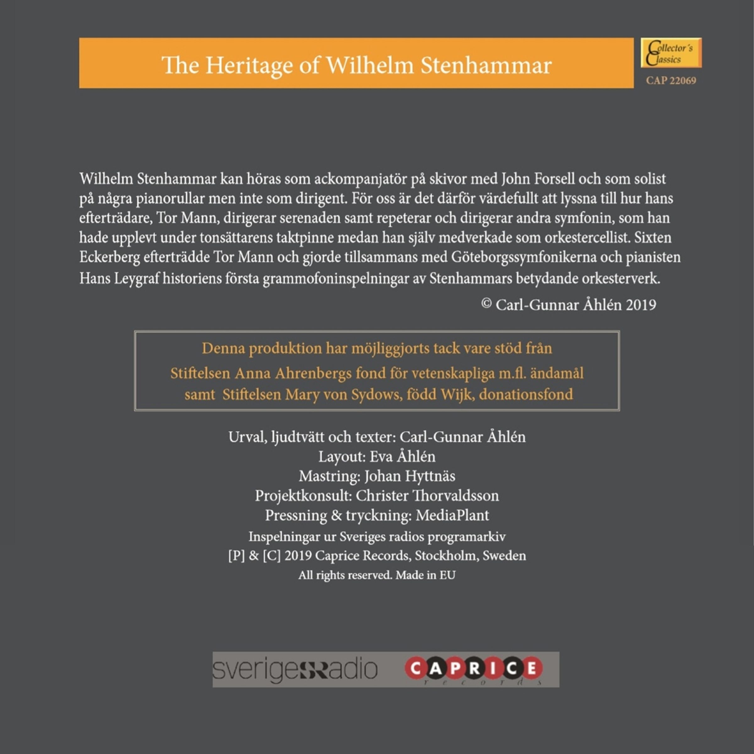 Sixten Eckerberg folgte Tor Mann und machte zusammen mit den Göteborger Symphonikern und dem Pianisten Hans Leygraf die Weltpremieren von Stenhammars bedeutenden Orchesterwerken auf Schallplatten.