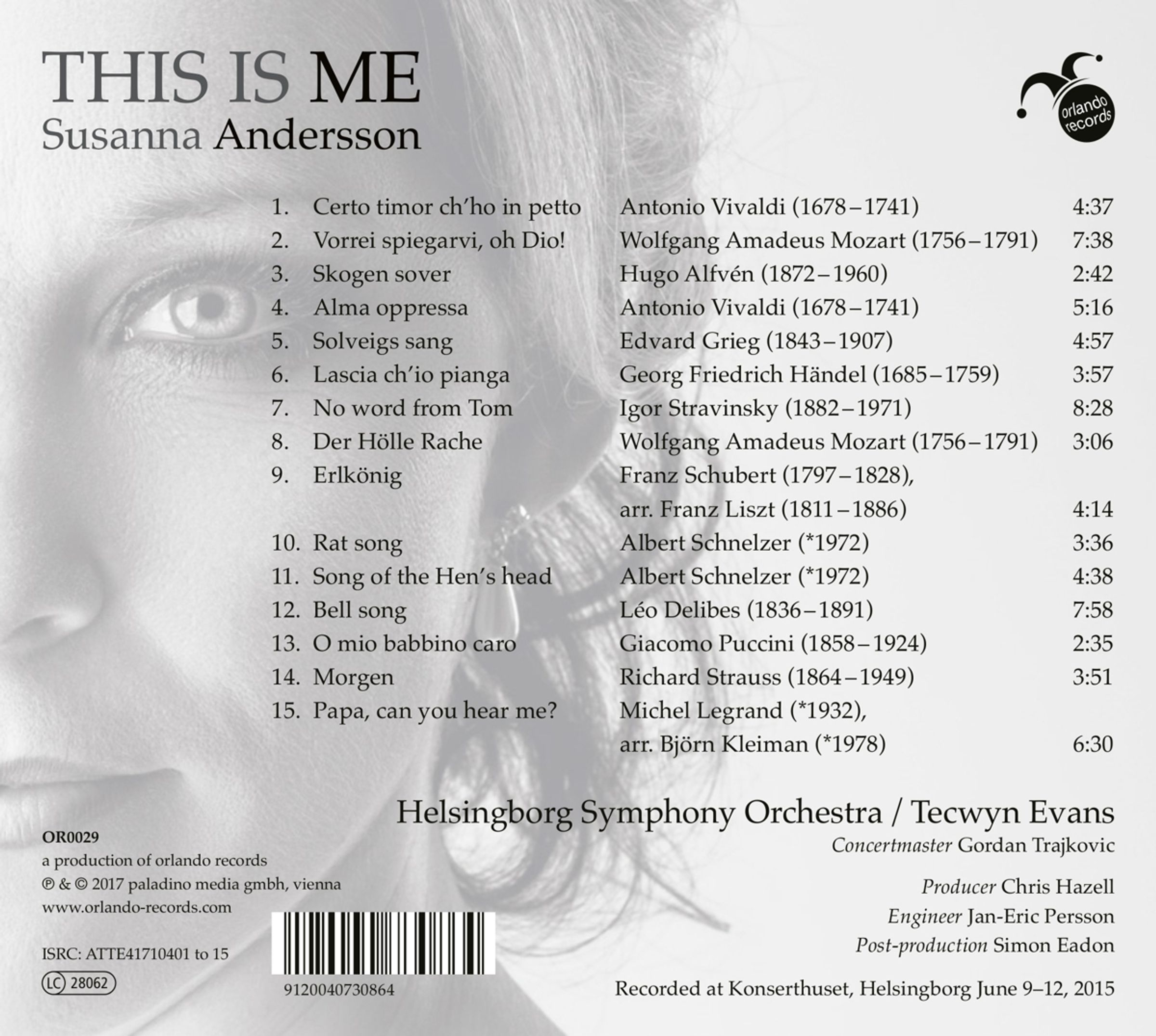Arien & Lieder von Vivaldi, Mozart, Alfven, Grieg, Händel, Strawinsky, Mozart, Schubert, Liszt, Schnelzer, Delibes, Puccini, Strauss, Legrand / Kleiman