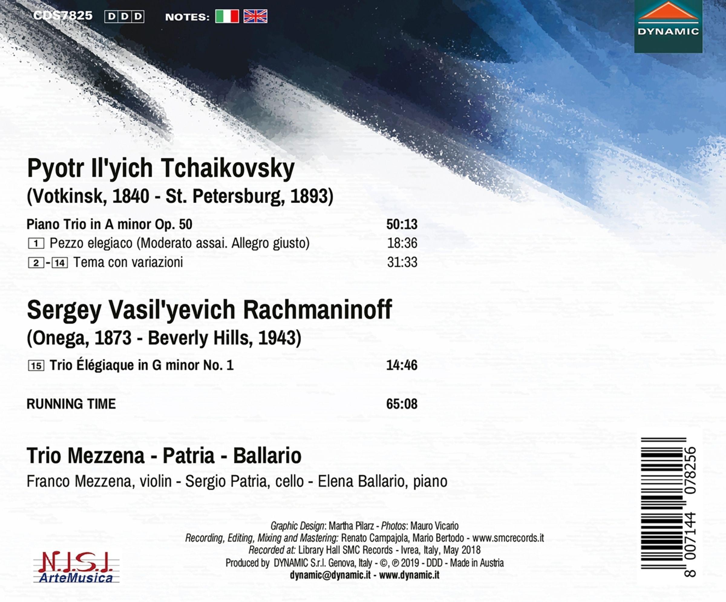 Sie wurde erst 1947 posthum veröffentlicht. Franco Mezzena, Sergio Patria und Elena Ballario, die sich seit langem persönlich kennen, begannen ihre künstlerische Partnerschaft 2015 als natürliche Folge ihres gegenseitigen Respekts und ihrer interpretatorischen Affinität. Francos präzises und rigoroses Geigenspiel, Sergios angeborene Ausdruckskraft und Elenas musikalische Ausgeglichenheit sind die drei Hauptmerkmale, die ihrem Trio alle notwendigen Mittel an die Hand geben, um die Musik, für die sie sich einstimmig entscheiden, bestmöglich zum Ausdruck zu bringen.