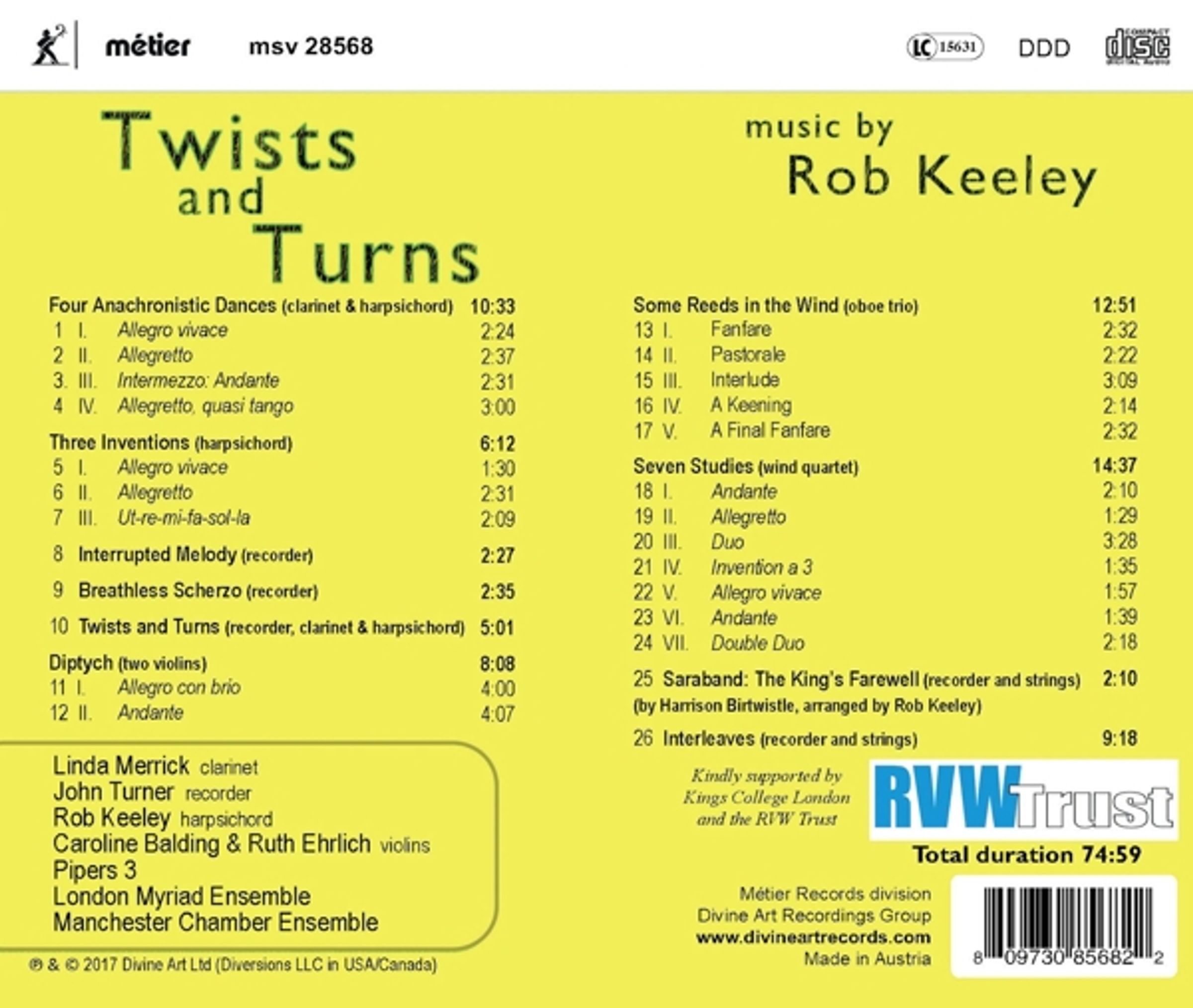 Rob Keeley: Kammermusik "Twists and Turns" auf CD