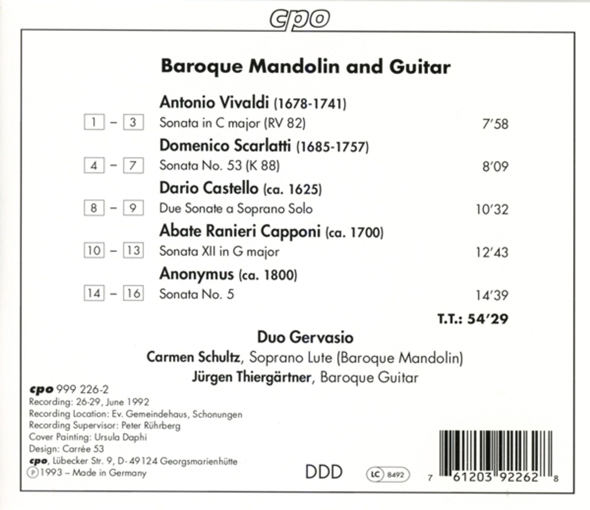 Unsere Interpreten, das Duo Gervasio, wählten Originalwerke für Barockmandoline und spielen auf historischen Kopien Kompositionen von Vivaldi, Scarlatti, Castello und Capponi.