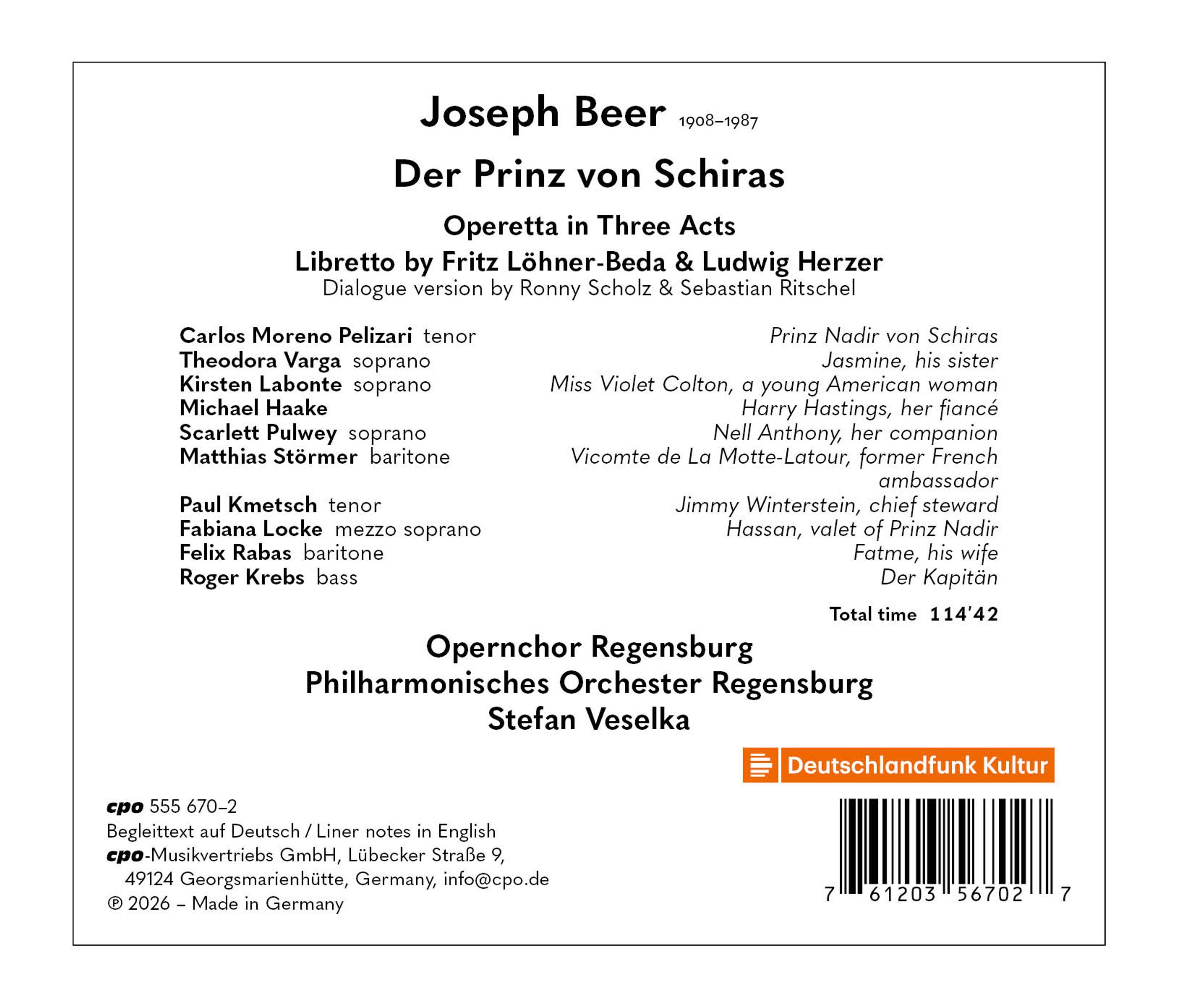 Joseph Beer: Der Prinz von Schiras (Operette in 3 Akten) auf 2 CDs