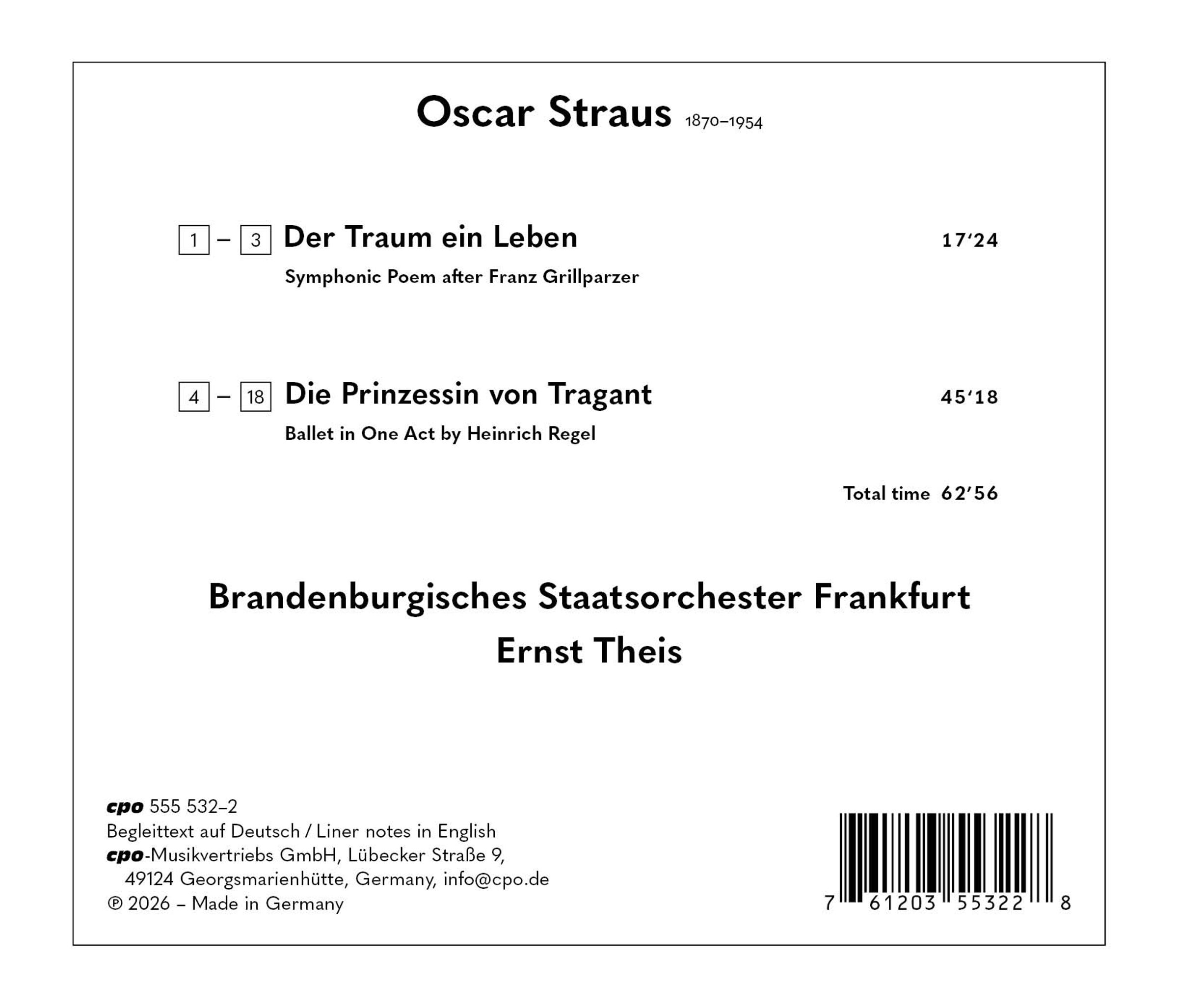 Oscar Straus: Symphonisches Gedicht "Der Traum ein Leben" auf CD